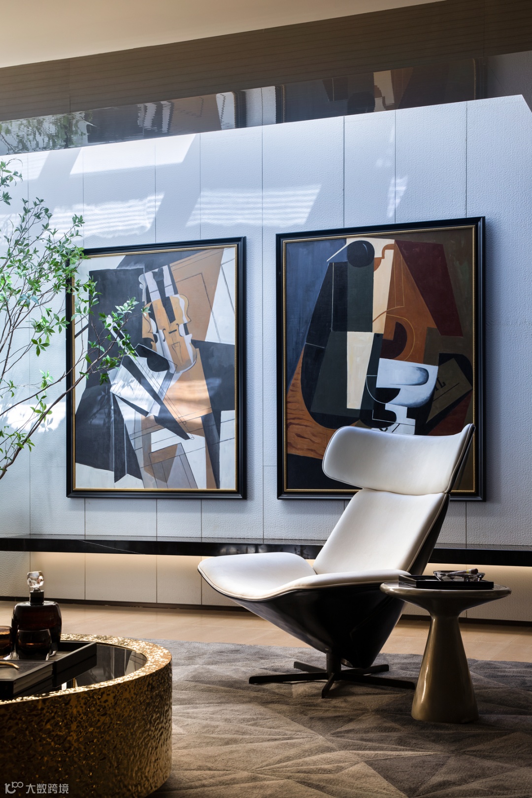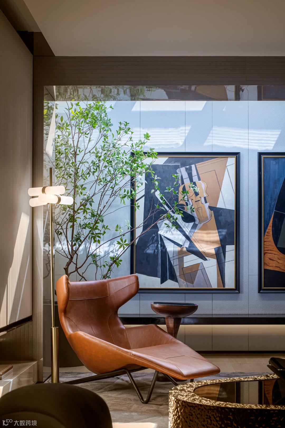 采光井引入自然光线,照射的阳光与家具、挂画、绿植共同交织出怡人的场景。