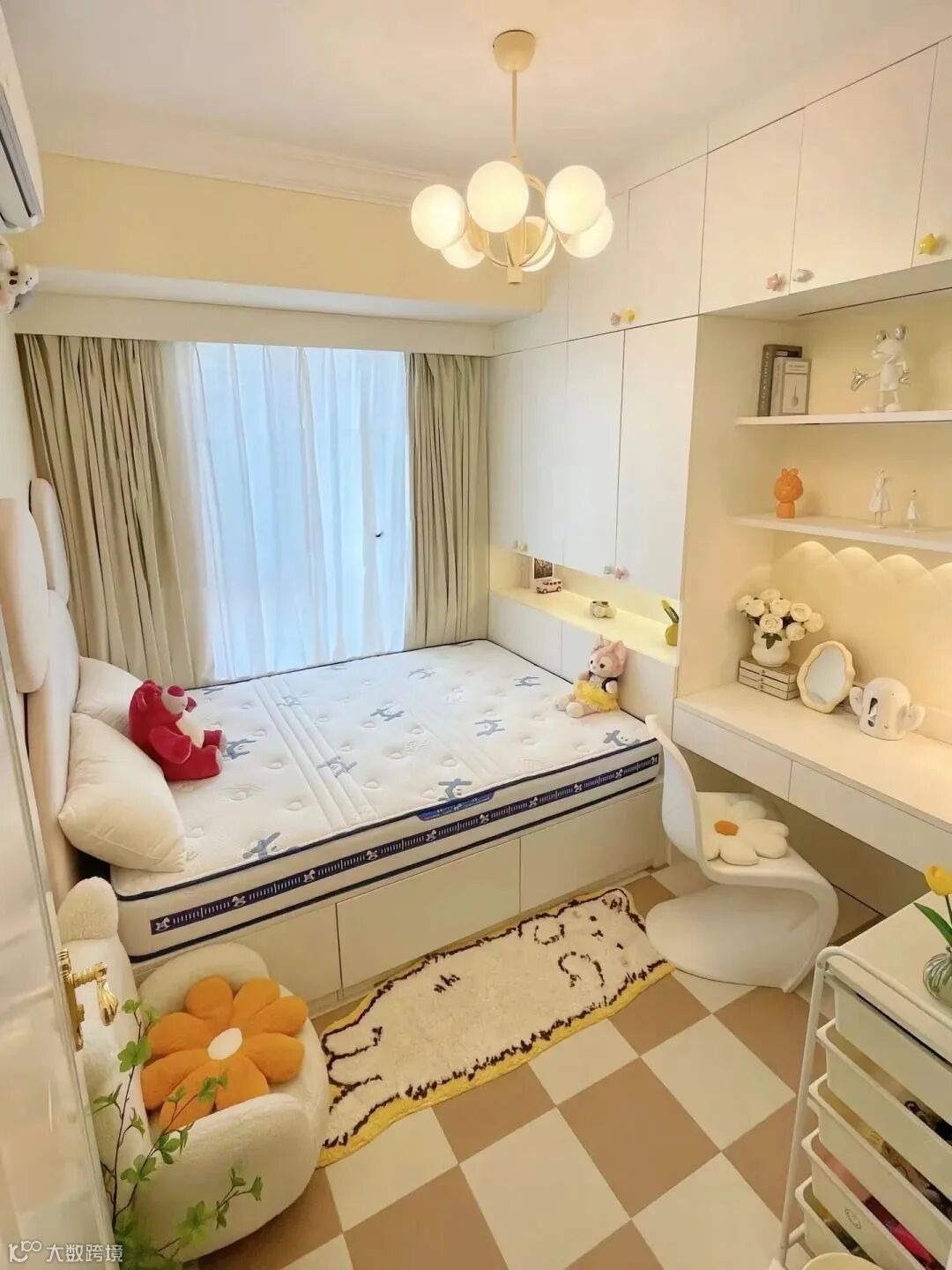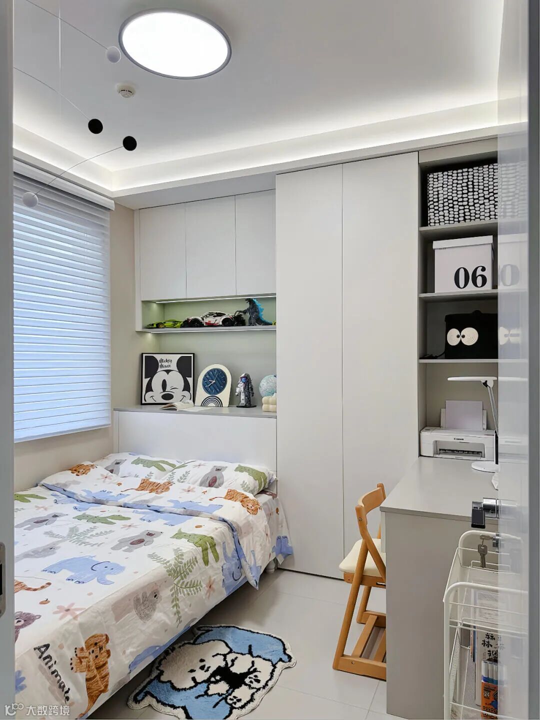由于目前普遍的住房情况,儿童房空间较小,难以在区域划分上实现清晰界定。这种情况下,全屋定制方案成为了优化儿童房布局的理想选择。通过巧妙融合各功能板块,在有限的“小空间”内激发出无限的“大功能”,打造出一个舒适实用的儿童成长天地。