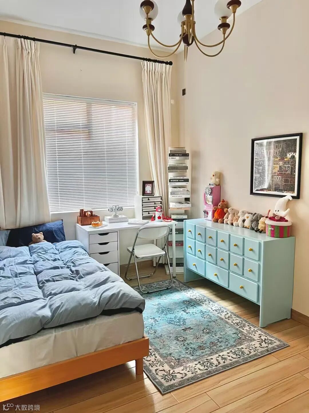 我们也可以通过不同颜色来创造出更多的效果,例如绿色和蓝色可以创造出一种自然、清新的感觉。而灯光的选择以明亮的光线为主,可以设置学习阅读模式、玩耍模式和睡眠“小夜灯”模式,有仪式感的灯光,能让孩子更爱自己的专属小天地。