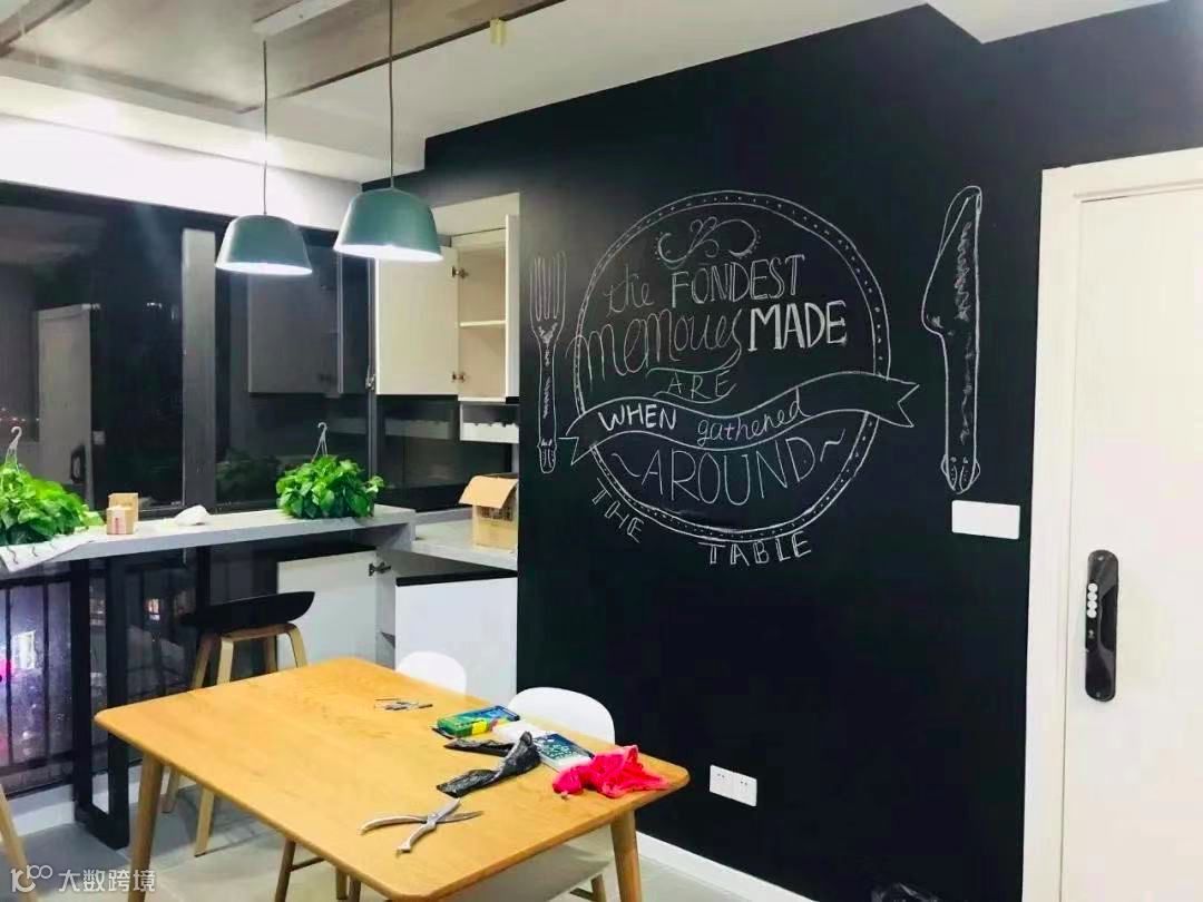 黑板墙还可以做装饰墙,在不同的节日或日子,可以画上相应格调的画面,增加节日的气氛。温馨提示:怕有灰尘的朋友可以用无尘粉笔、液体粉笔画,用湿布擦哦!