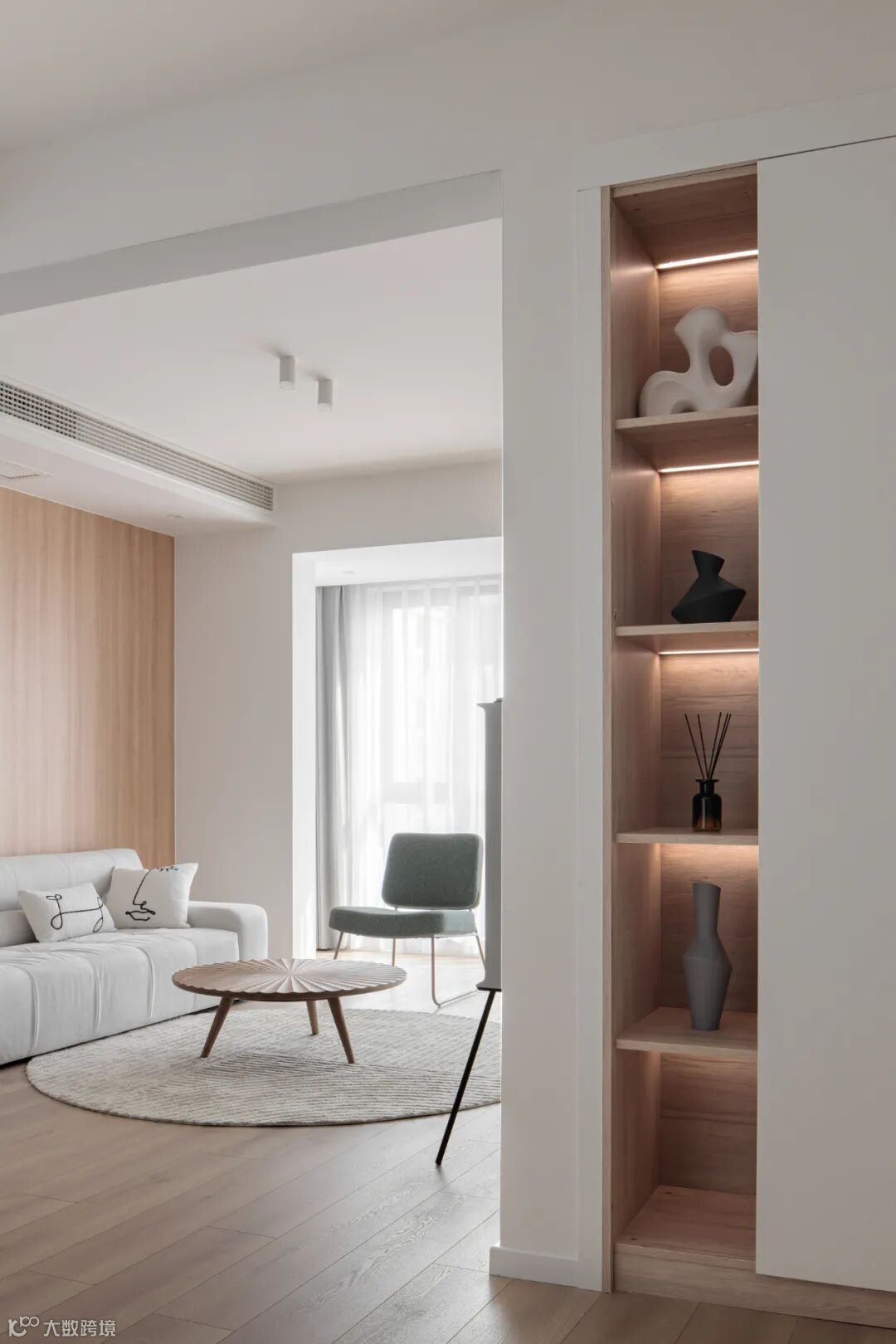 白色是最接近艺术本真的色彩,静谧唯美,与质朴木饰面串联出空间层次感、强调舒适休闲空间氛围、形成包容迷人的空间性格。
