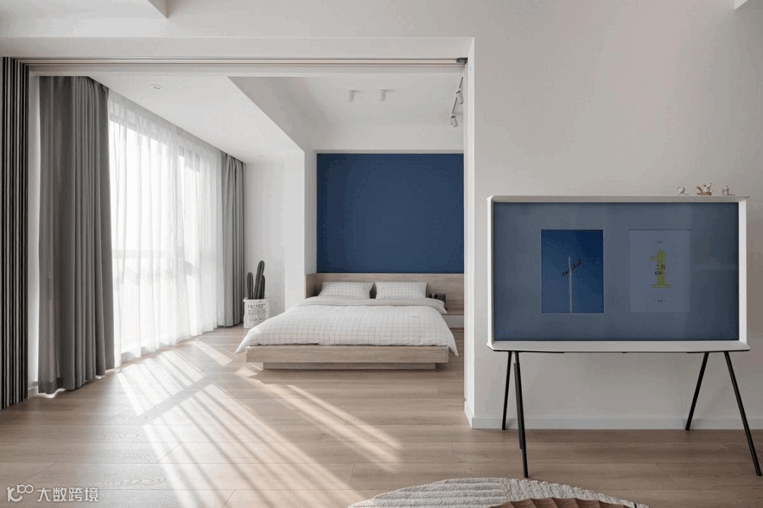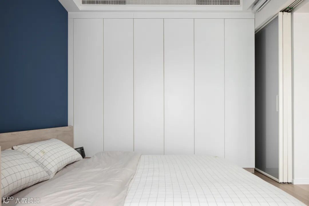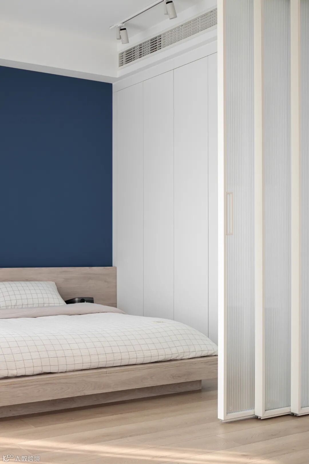 主卧和客厅之间设计了联动的长虹玻璃推拉门,日常打开,视野十分宽阔。