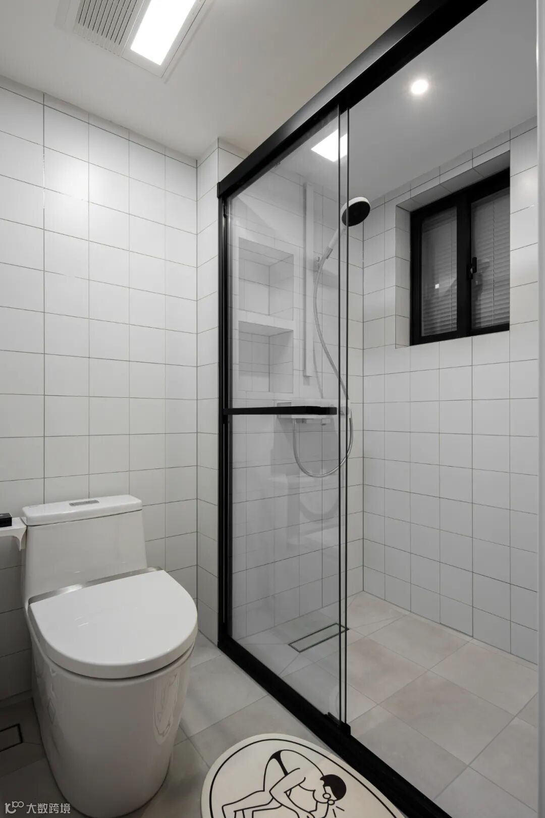 卫生间内部用白色的小方砖铺贴,扩大空间感也更加明亮。
