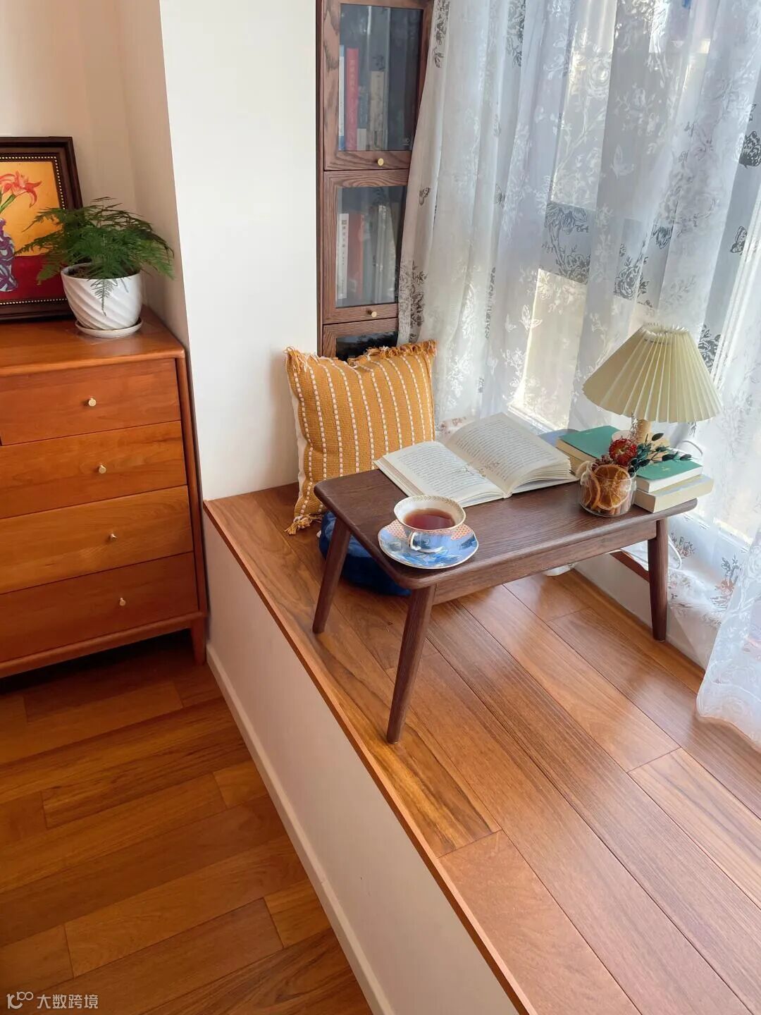 ✅ 改造重点: - 日式风选亚麻坐垫+矮茶几,配日式卷帘,打造mini茶室; - ins风搭藤编托盘+香薰,纱帘选雪纺材质,阳光透过时会形成温柔光斑; - 智能党可装温控坐垫+电动窗帘,躺一下午都不觉得累,还能语音控制窗帘开合。