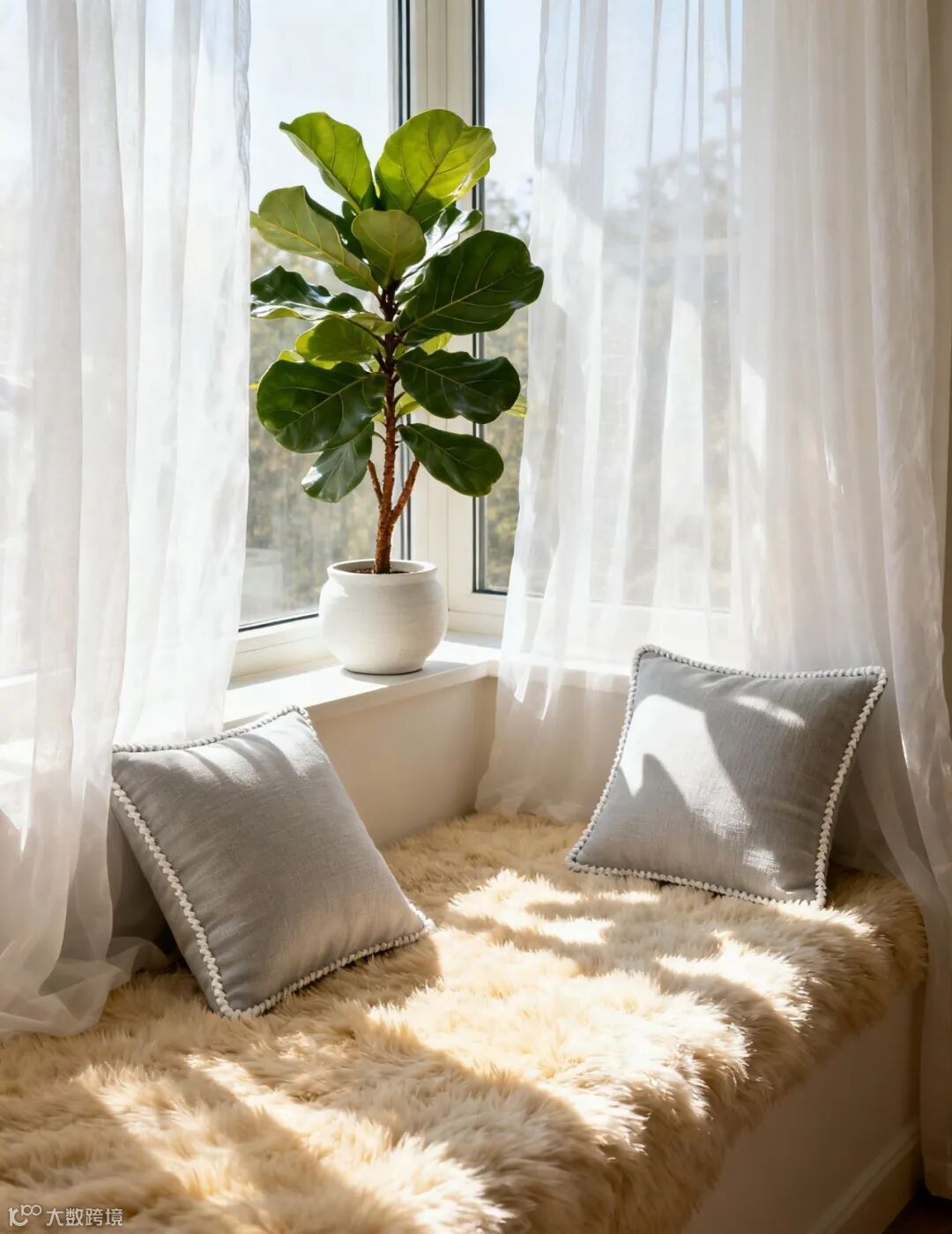2. 小空间救星:落地布+飘窗纱(显大5㎡)