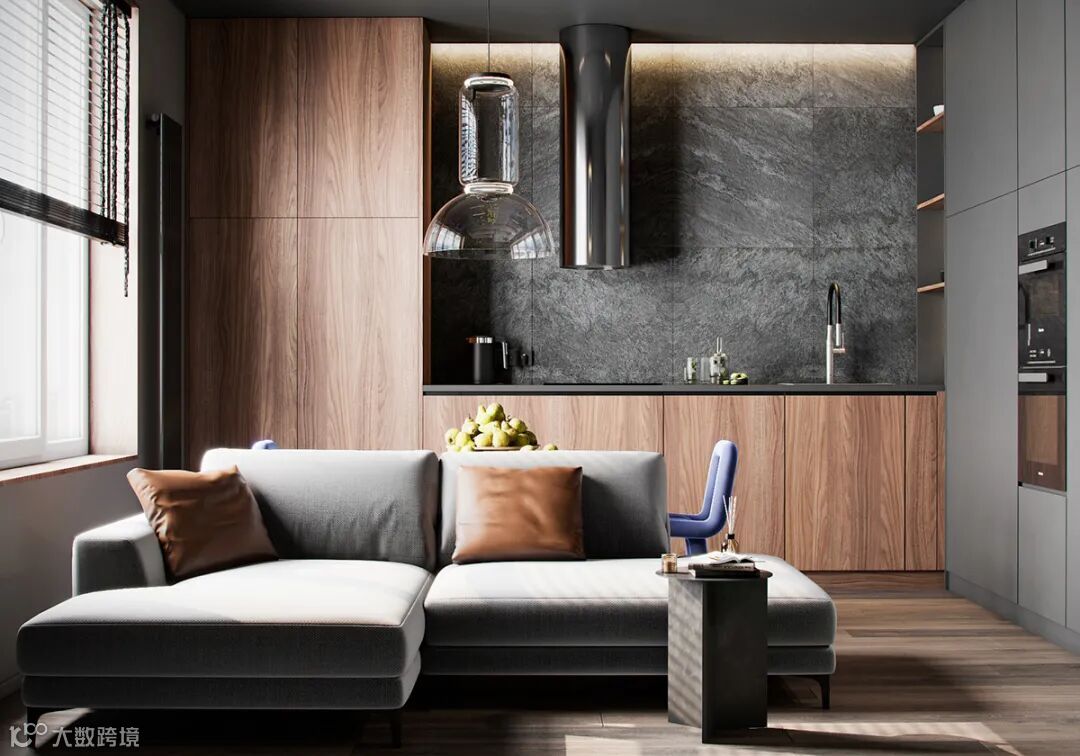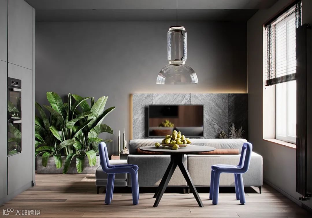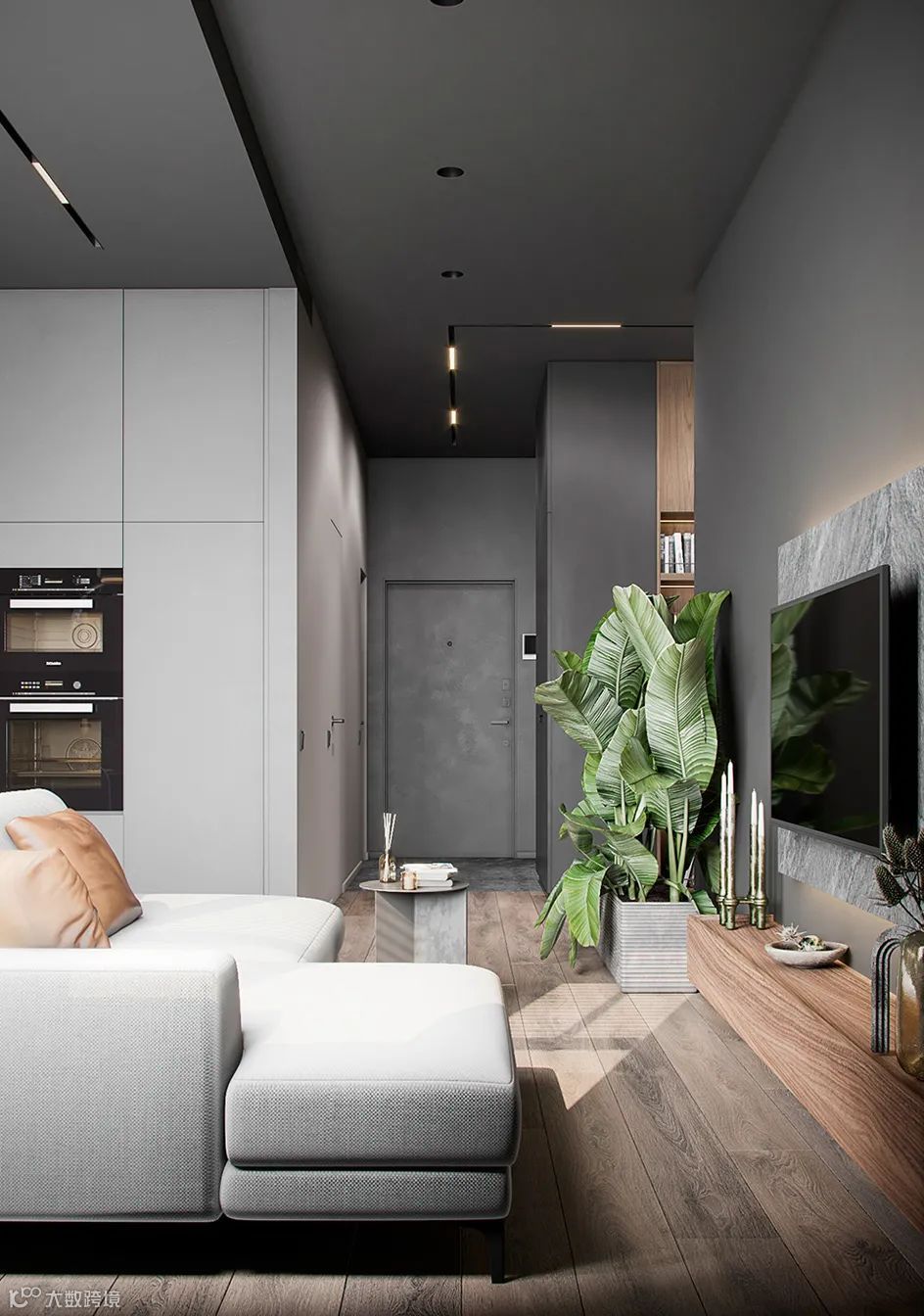 Болижевский Андрей新作,75㎡丰维辛斯基公寓设计,设计师选择了灰暗而有质感的主要基调,视觉上呈现出工业感的肌理效果。其次,采用了暖色调的橡木地板,用来平衡冷色调所产生的冷峻感。