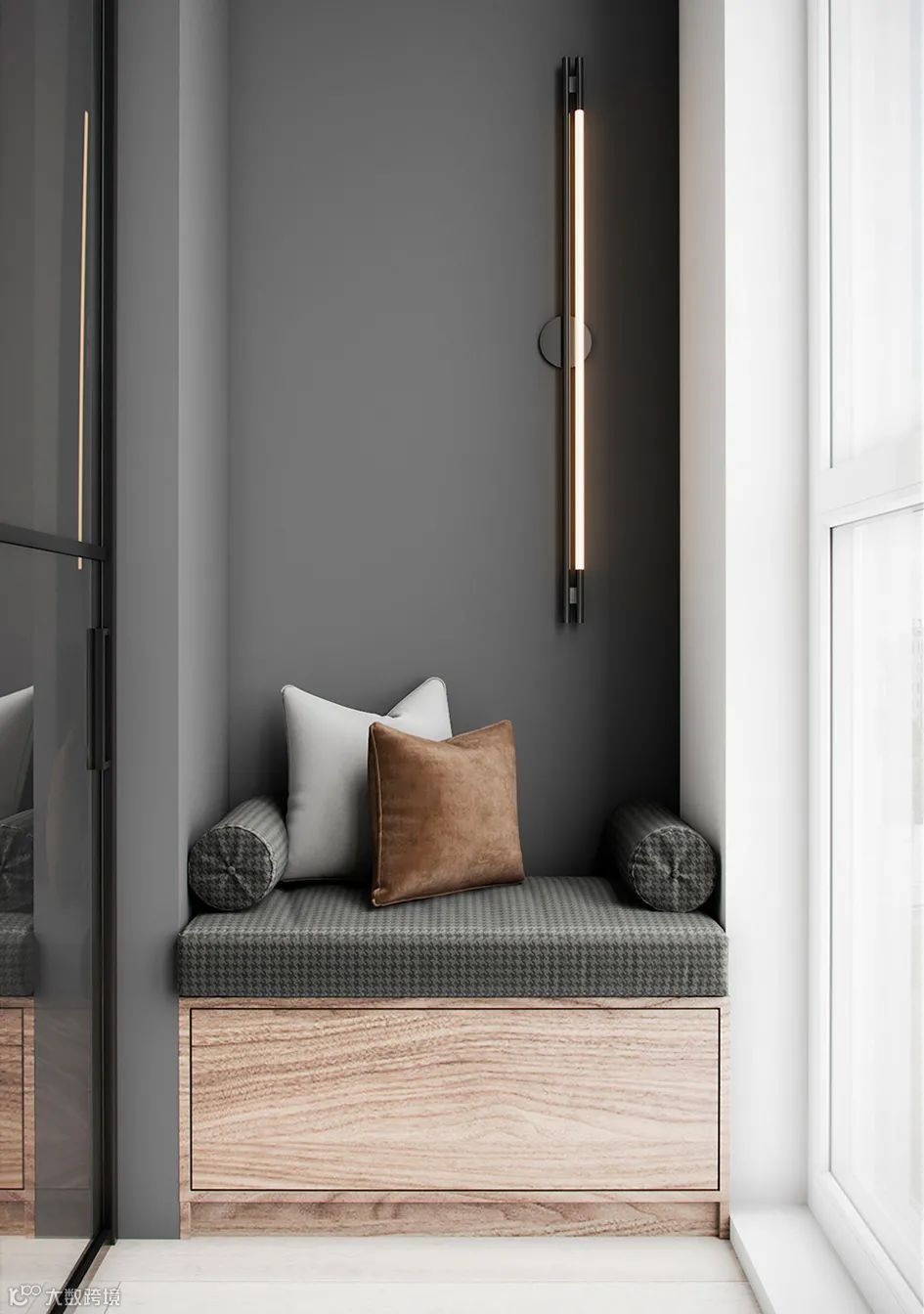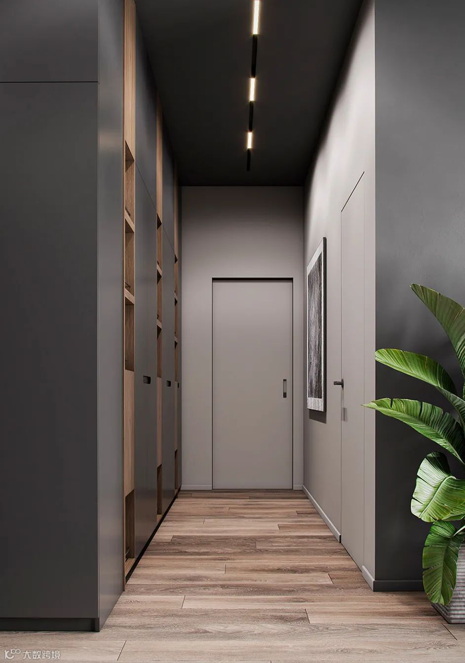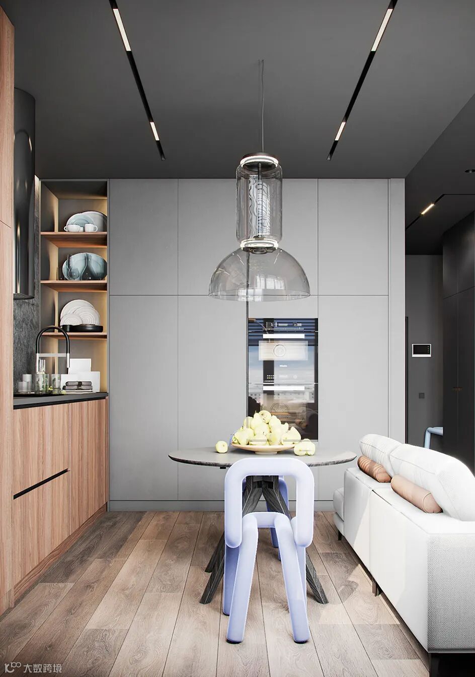 Болижевский Андрей新作,75㎡丰维辛斯基公寓设计,设计师选择了灰暗而有质感的主要基调,视觉上呈现出工业感的肌理效果。其次,采用了暖色调的橡木地板,用来平衡冷色调所产生的冷峻感。
