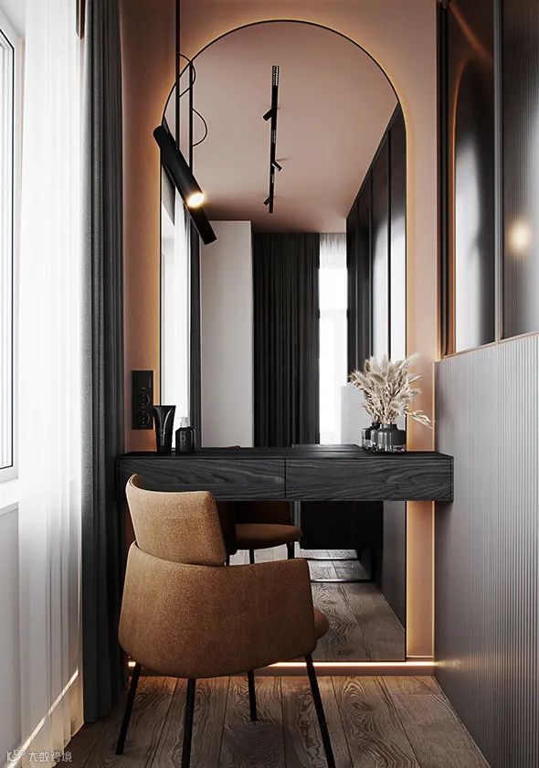 床头的背后是一个小型的化妆间,在这里偶尔的休息一下也是蛮惬意的,而且隐私感也很强。