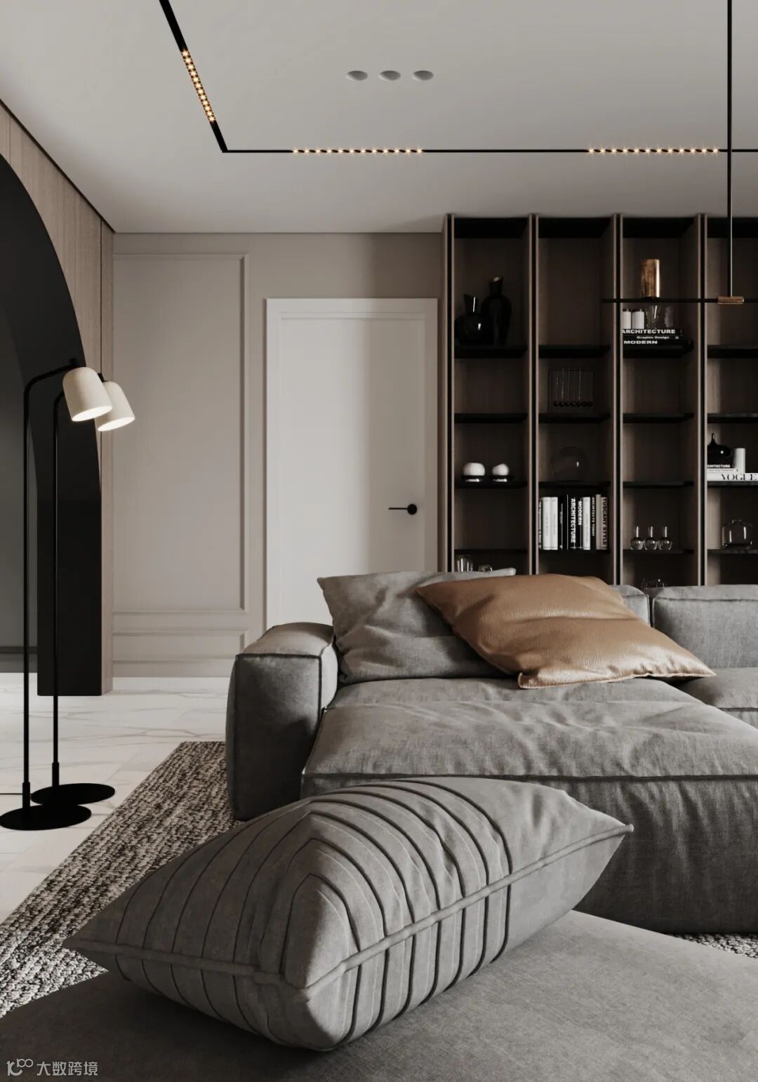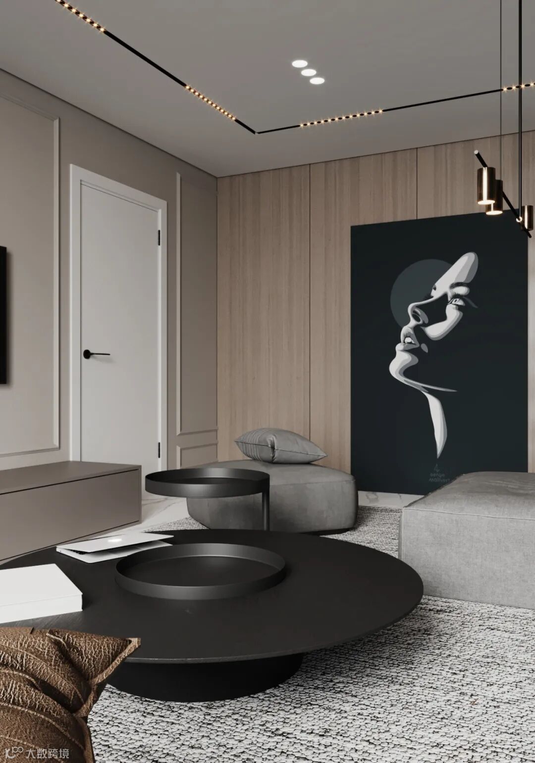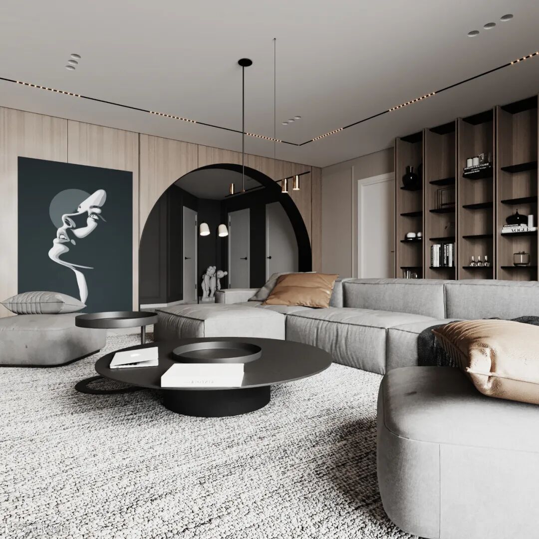 Radu Moisei可视化,大气有格调的家居环境,以高级灰、白色、木色作为主调,避开浓重的色彩,运用大量直纹线条,勾勒出住宅轮廓,既有现代生活的简约实用,又富有生活气息。