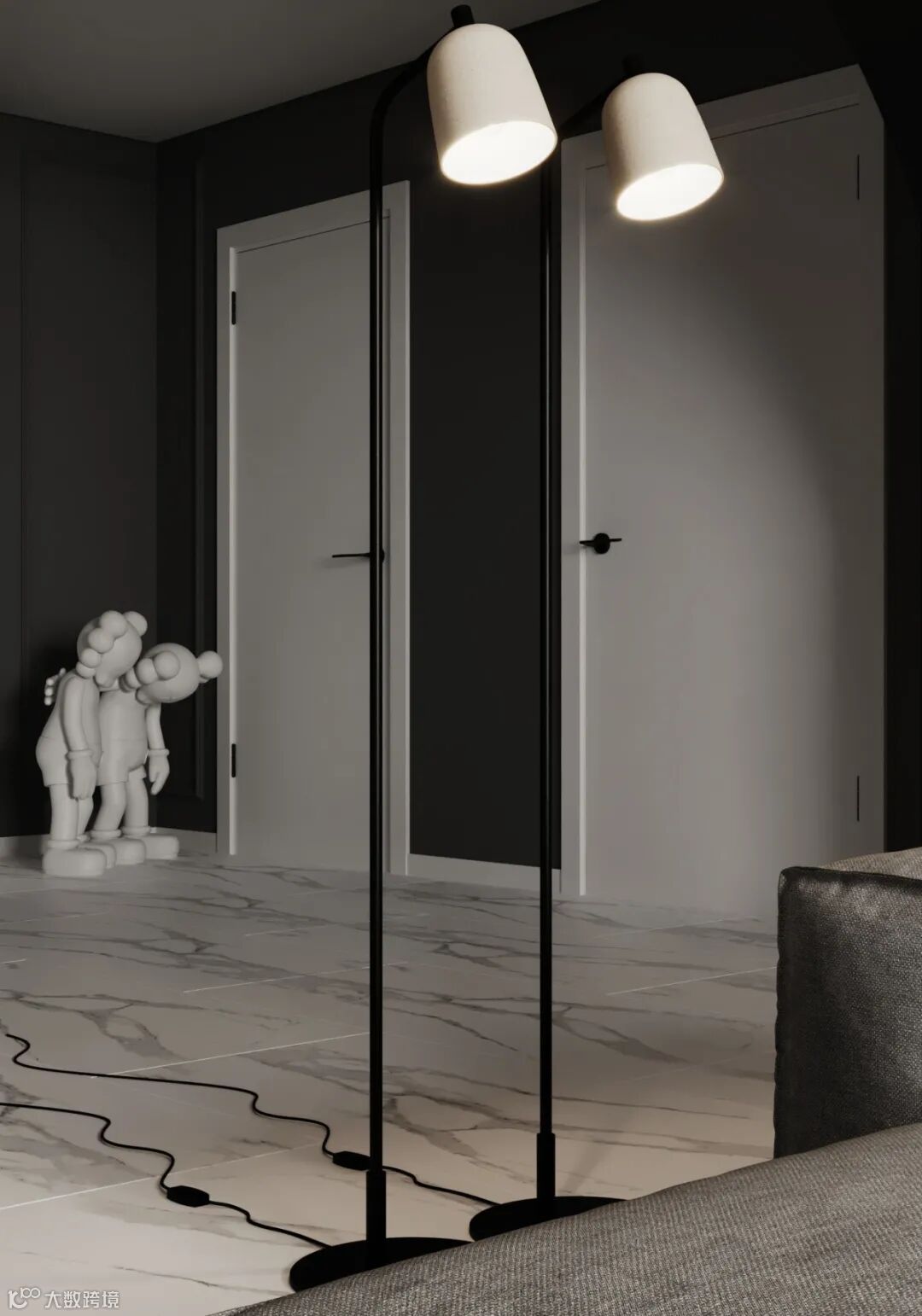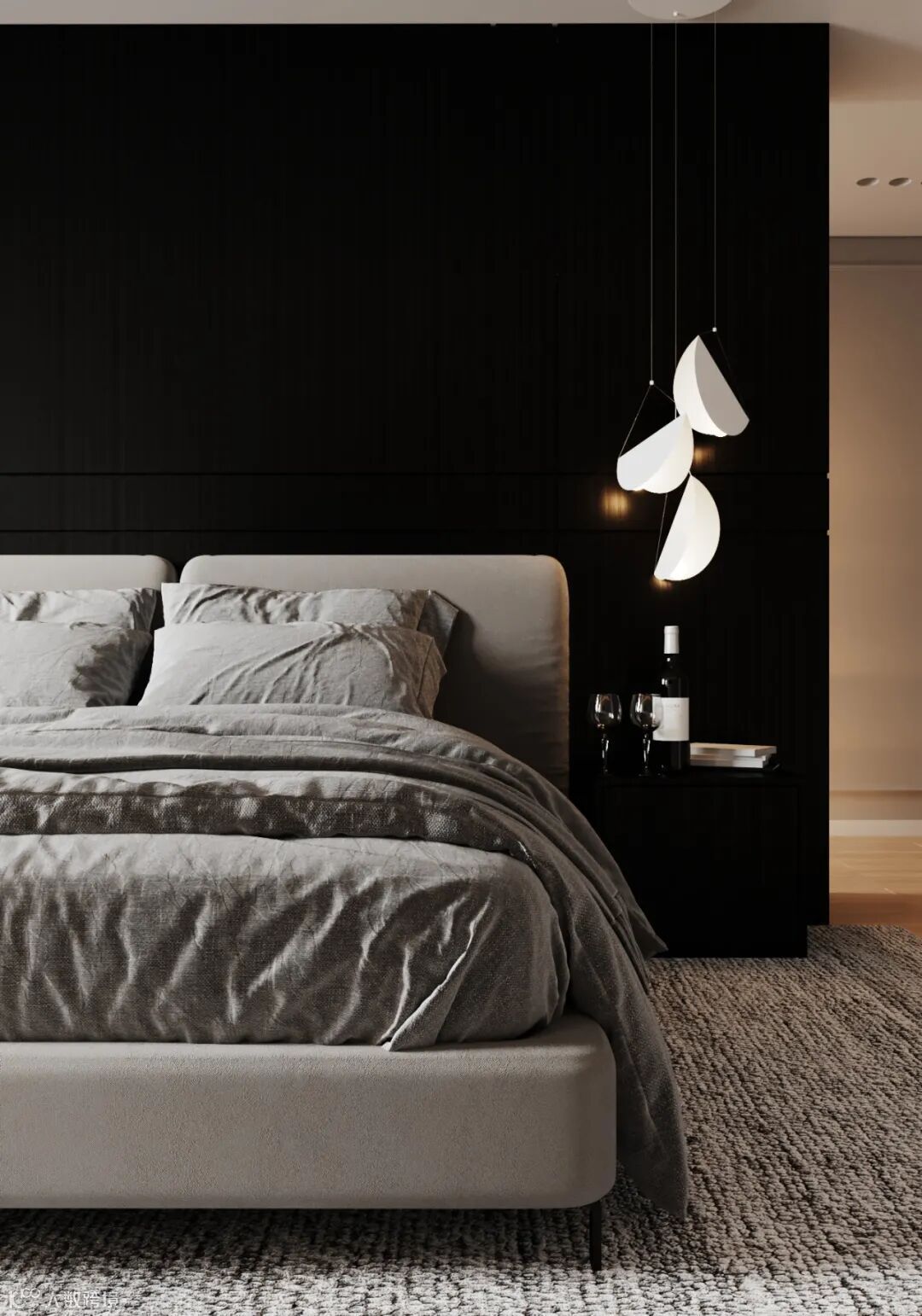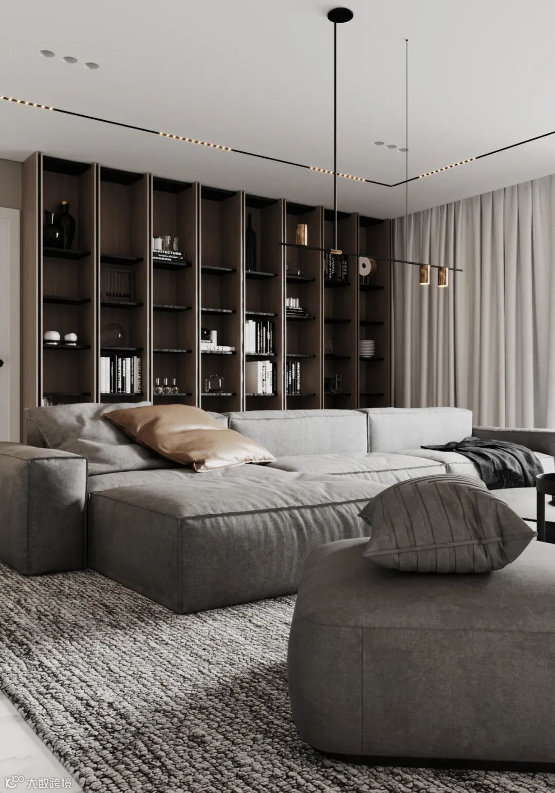 Radu Moisei可视化,大气有格调的家居环境,以高级灰、白色、木色作为主调,避开浓重的色彩,运用大量直纹线条,勾勒出住宅轮廓,既有现代生活的简约实用,又富有生活气息。