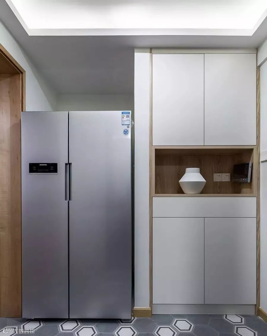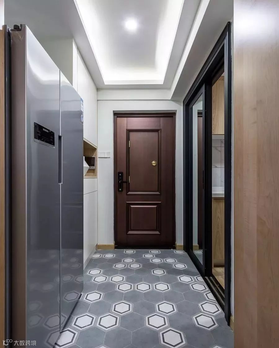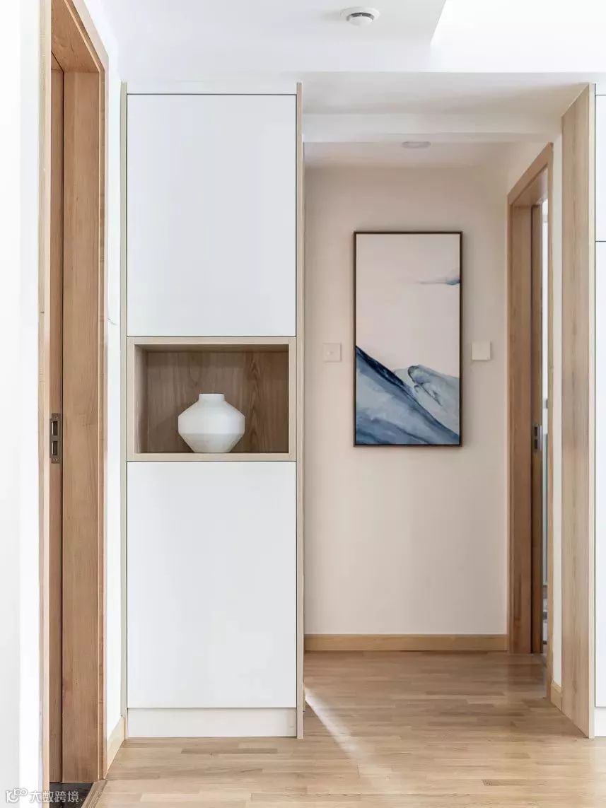 通入卧室的过道,收纳柜的设立,避免了卫生间正对卧室的尴尬,同时还增加了空间的收纳功能。