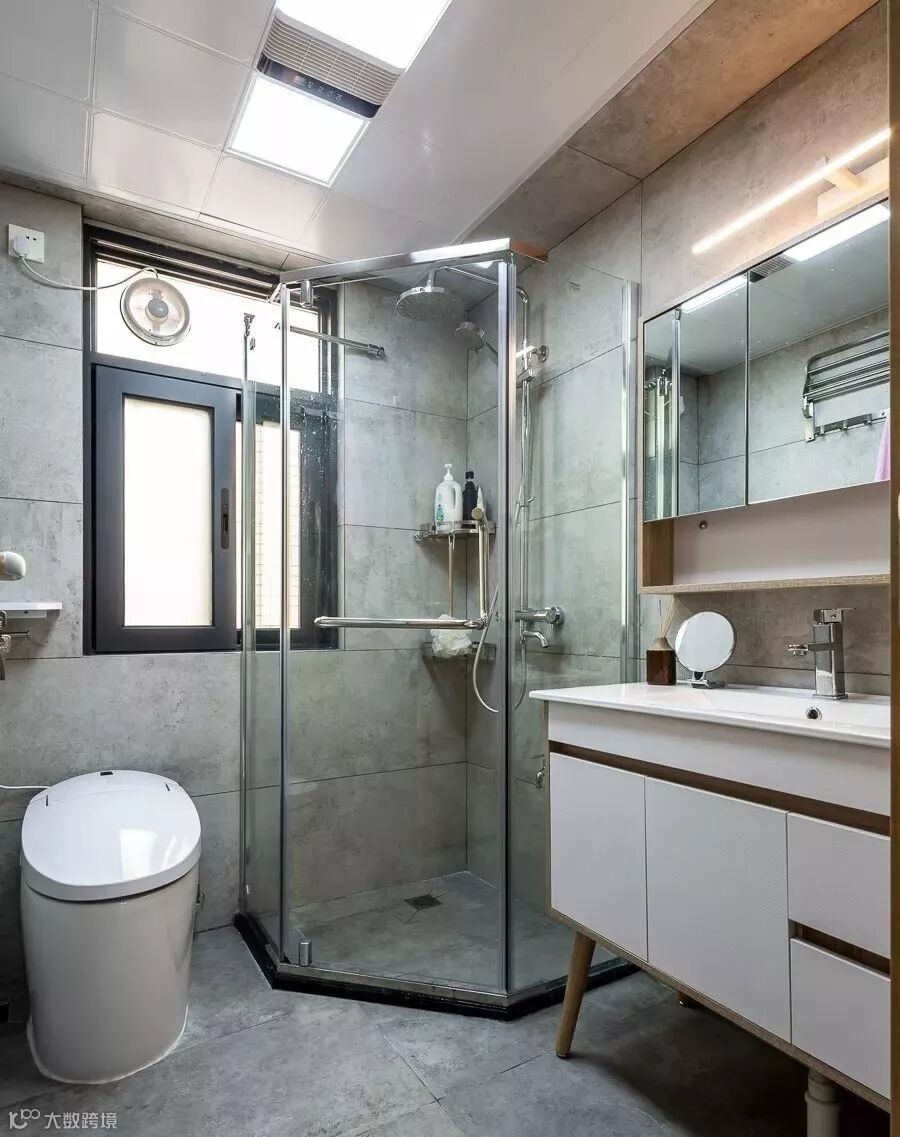 卫生间虽小,也做了干湿分区。卫浴柜和镜柜用于存放洗漱清洁用品,想必是足够的。