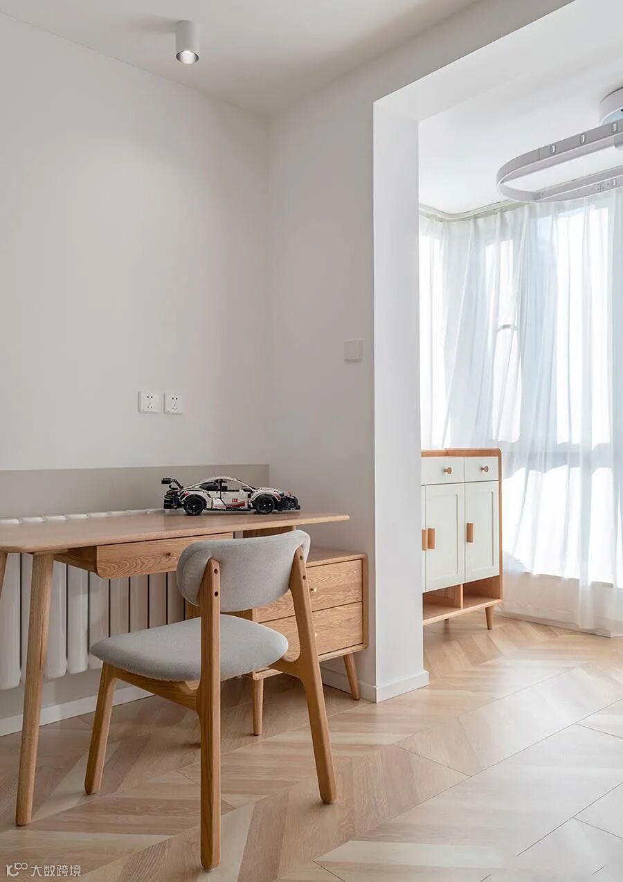考虑到偶有客人小住,多功能房右侧的柜子里隐藏一张双人床,设计非常巧妙。而且,这里还可以改造成孩子的卧室,独立小空间。