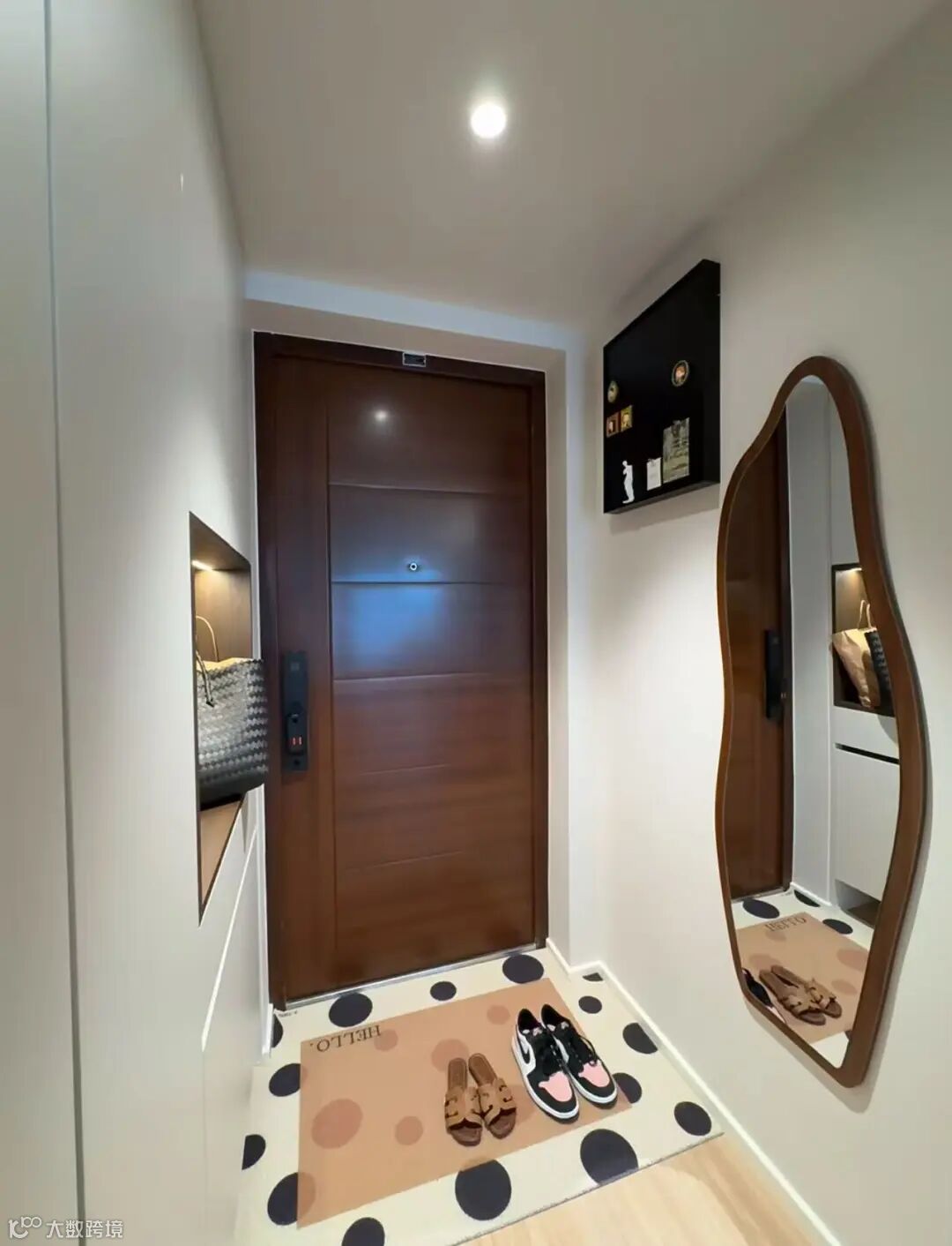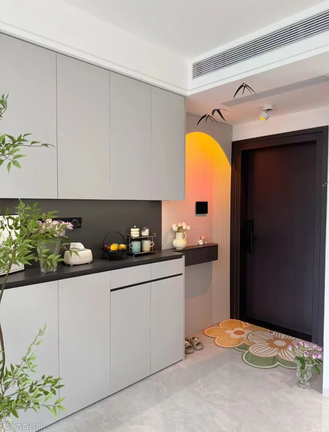 镜子是玄关常见的元素,它不仅能帮助我们出门前整理仪表,还能在视觉上起到扩大空间的效果。但镜子的摆放有一定讲究,千万不能正对着大门,从风水角度来说,镜子对门会将财气反射出去;从生活体验来看,开门瞬间看到镜子中的影像也容易让人产生不适感。建议将镜子安装在玄关侧面或鞋柜柜门内侧,既实用又美观。