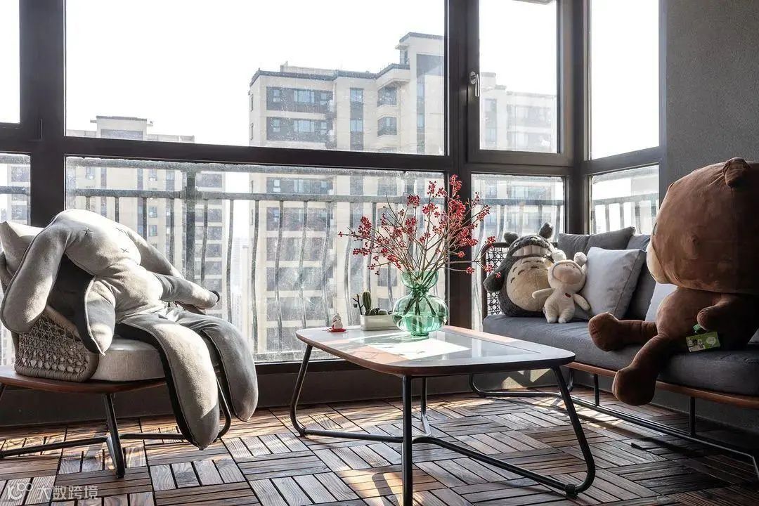 2、阳台上的功能,要尽量和客厅一致。可以稍作变化,比如客厅的功能是休闲,阳台就可以喝喝茶。或者在阳台上工作、读书、健身,也都是可以的。