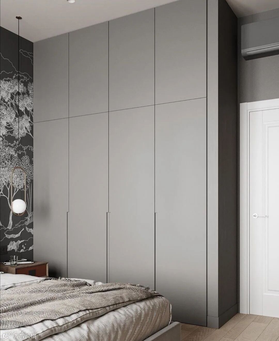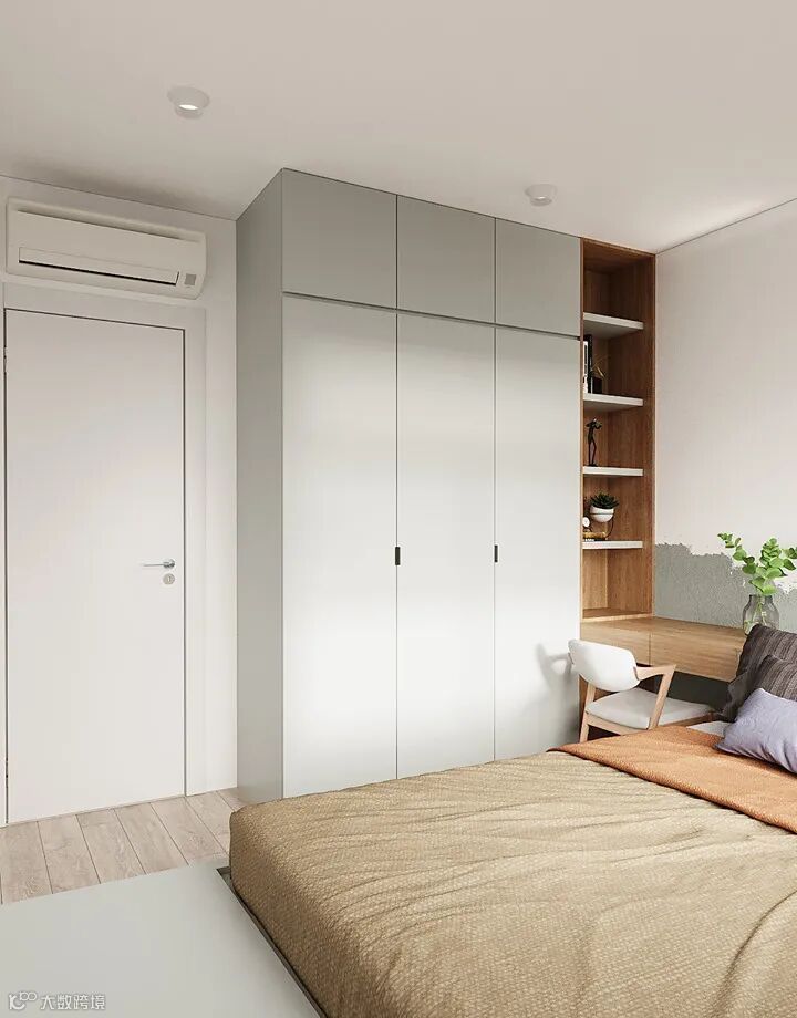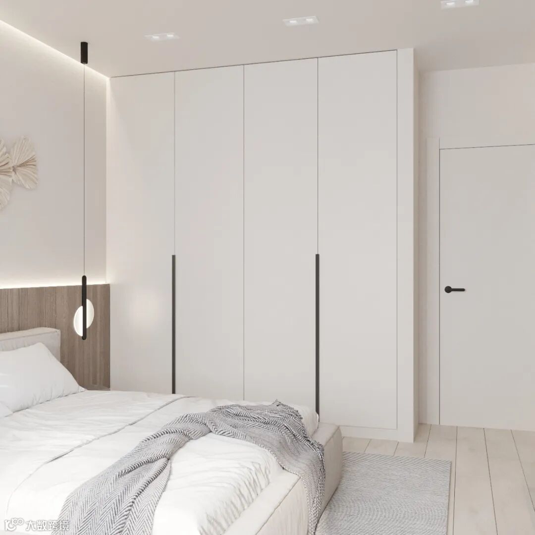 衣柜做一门到顶,整体美观的视觉效果,一门到顶衣柜最大限度的减少了接缝的出现,使完成之后的衣柜具有简洁和整体性强的特点,能够很好地与周围的环境融合在一起。