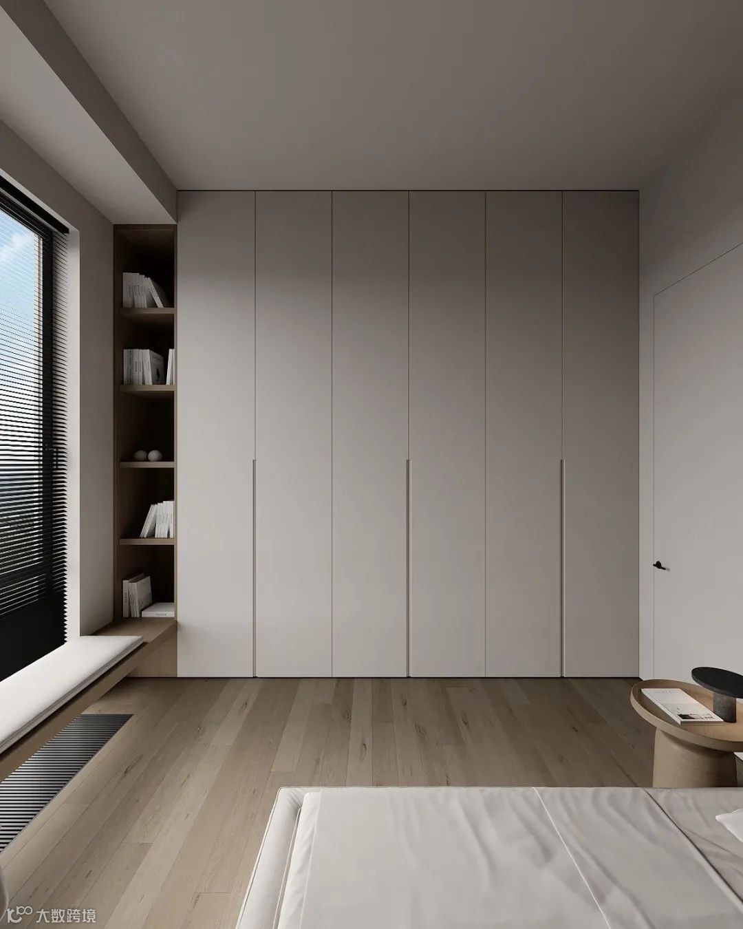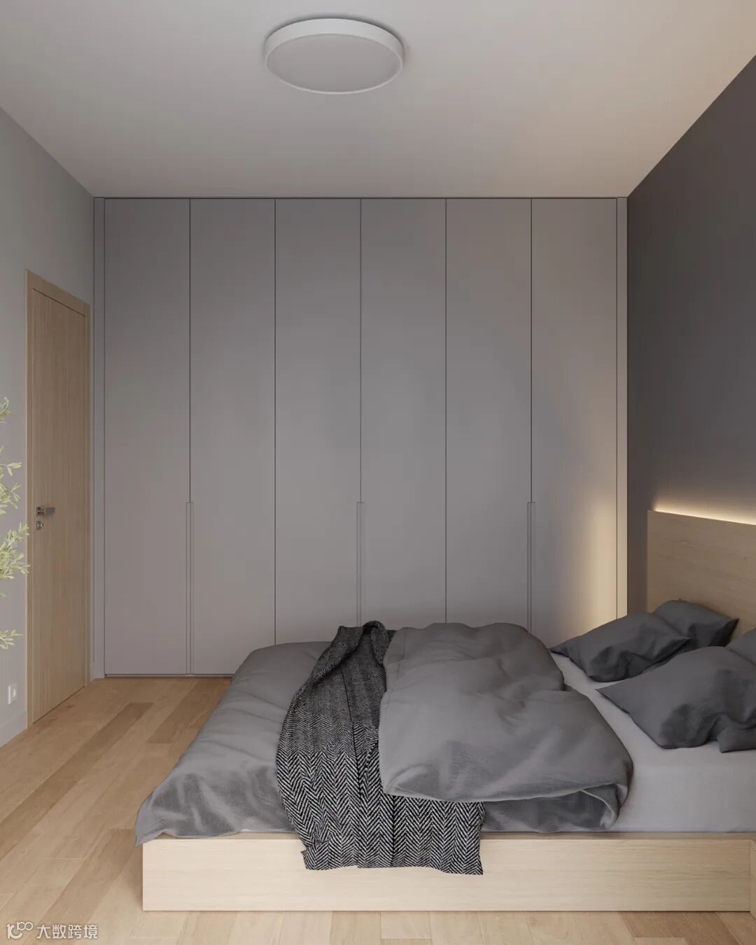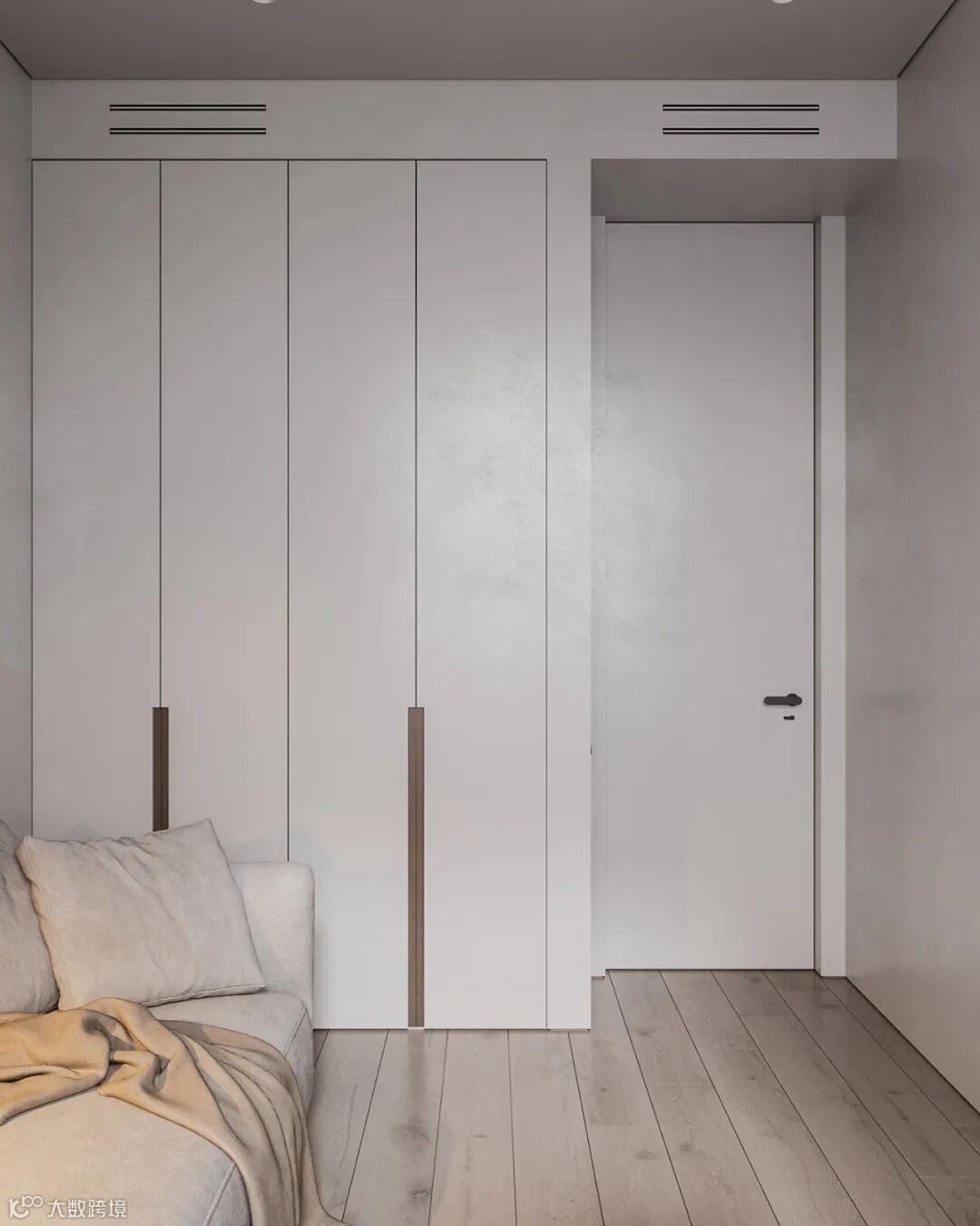 衣柜做一门到顶,整体美观的视觉效果,一门到顶衣柜最大限度的减少了接缝的出现,使完成之后的衣柜具有简洁和整体性强的特点,能够很好地与周围的环境融合在一起。