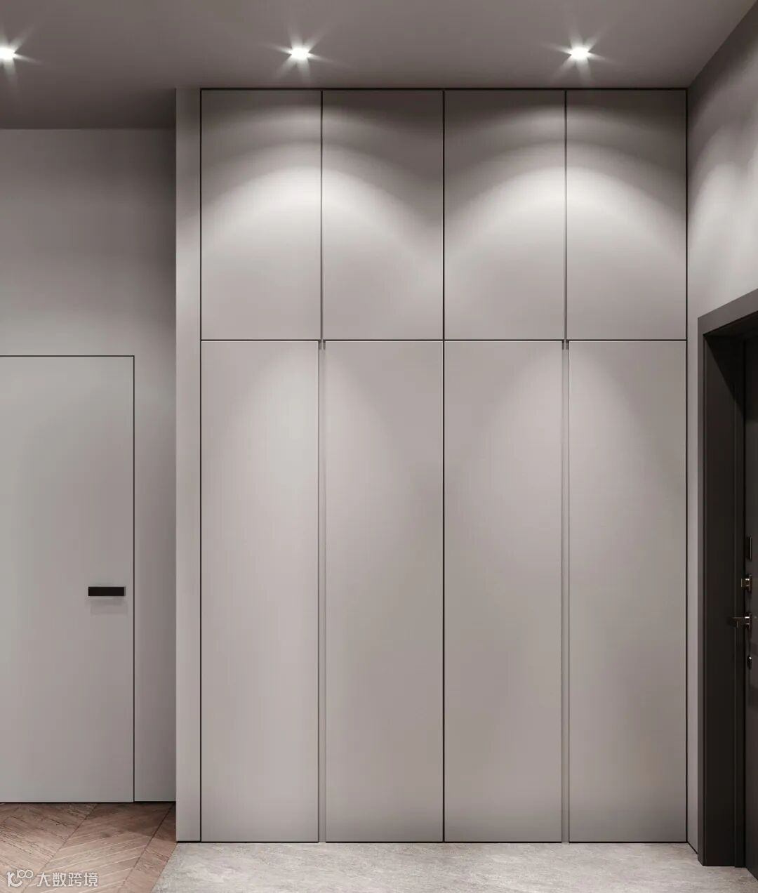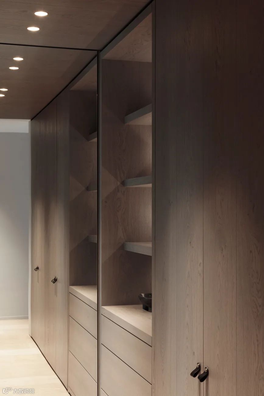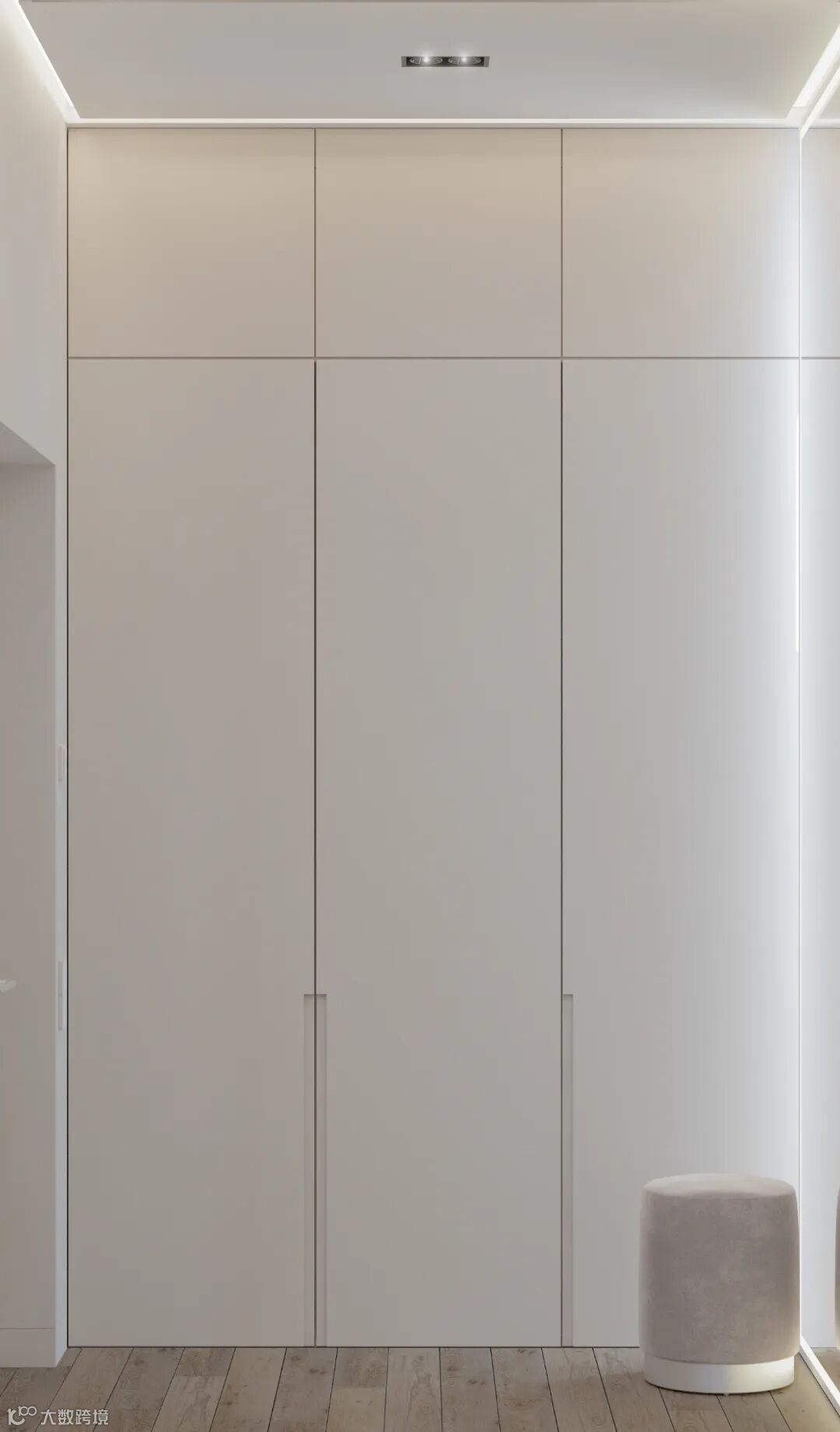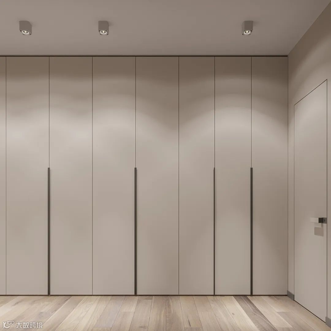 免拉手的衣柜门或暗藏拉手柜门的外观平整,在拥挤的空间下,如狭窄的玄关处,没有凸起的明装拉手,可以减少磕碰的发生。
