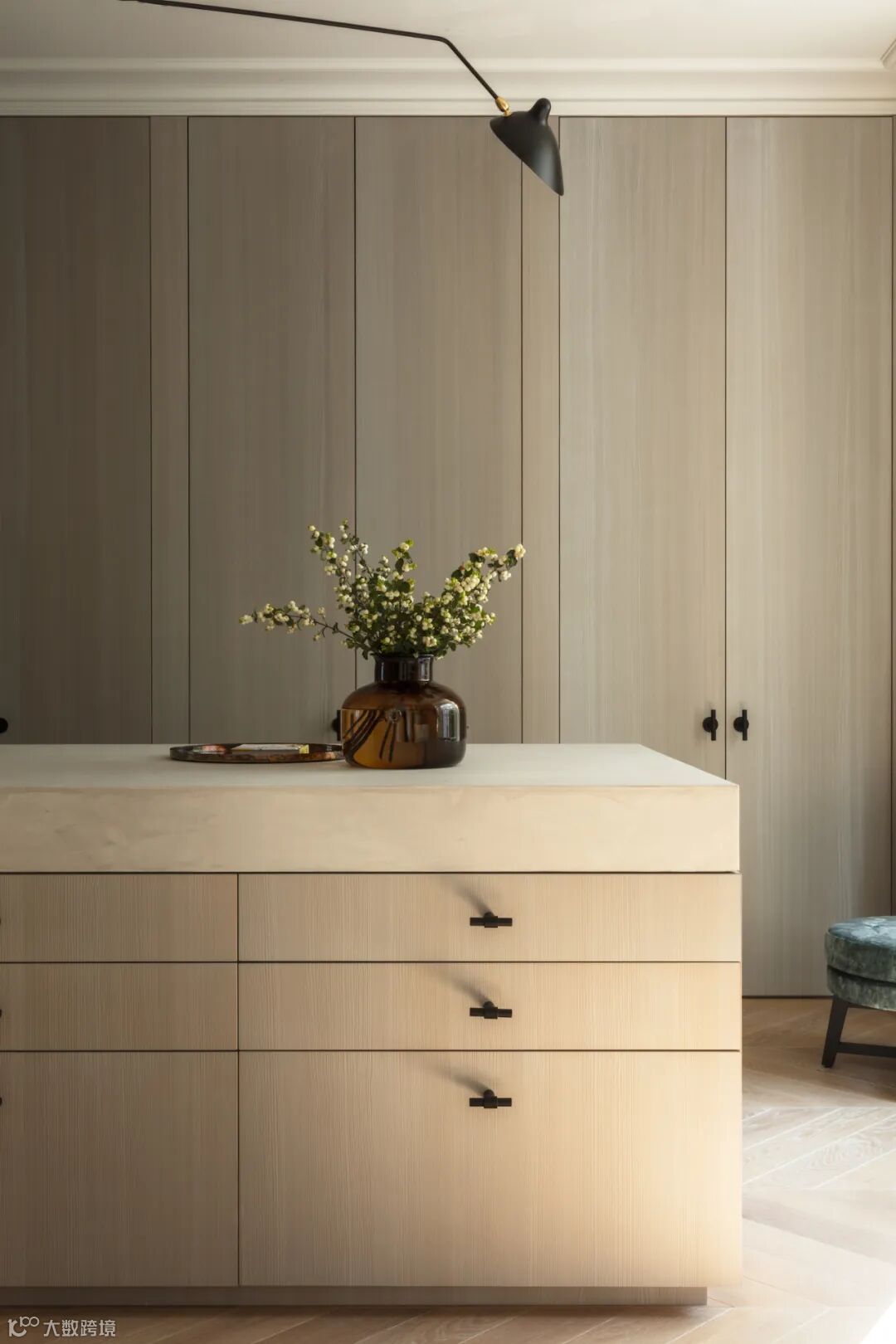 随着极简主义的流行,越来越多的都市人开始摒弃繁杂,近年来免拉手式柜门也特别流行,其立面统一干净,整体视觉平整大方,因而备受宠爱。