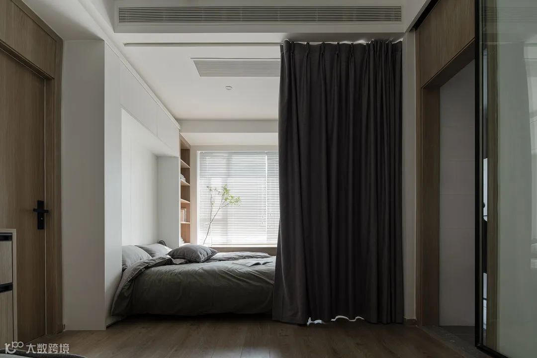 为了保证空间私密性,加入了一道窗帘隔断设计,需要的时候展开,不需要的时候收合在空间缝隙中,一点不影响美观。