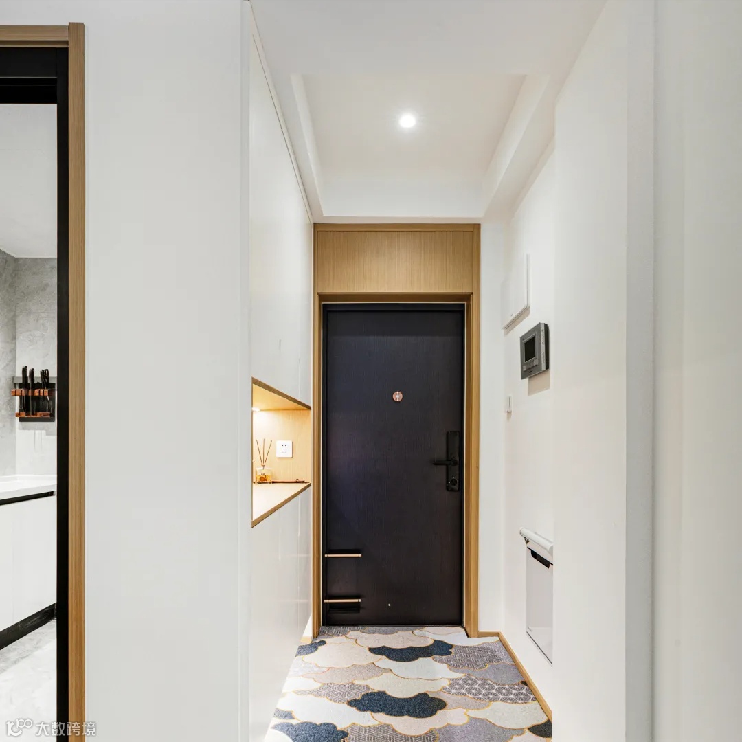 原入户空间狭小,设计师改变厨房门方向,加强空间光线和动线的连贯性。