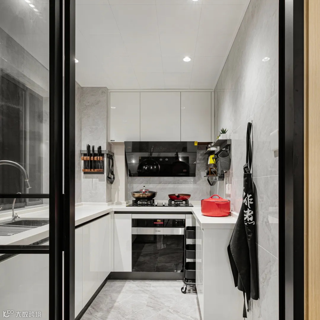 “U”型的橱柜布局,收纳充足,动线流畅,烹饪也更加方便。