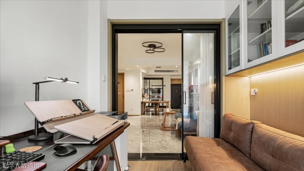 阳台改为书房,三联动的玻璃移门引入采光,空间通透明亮又大气。
