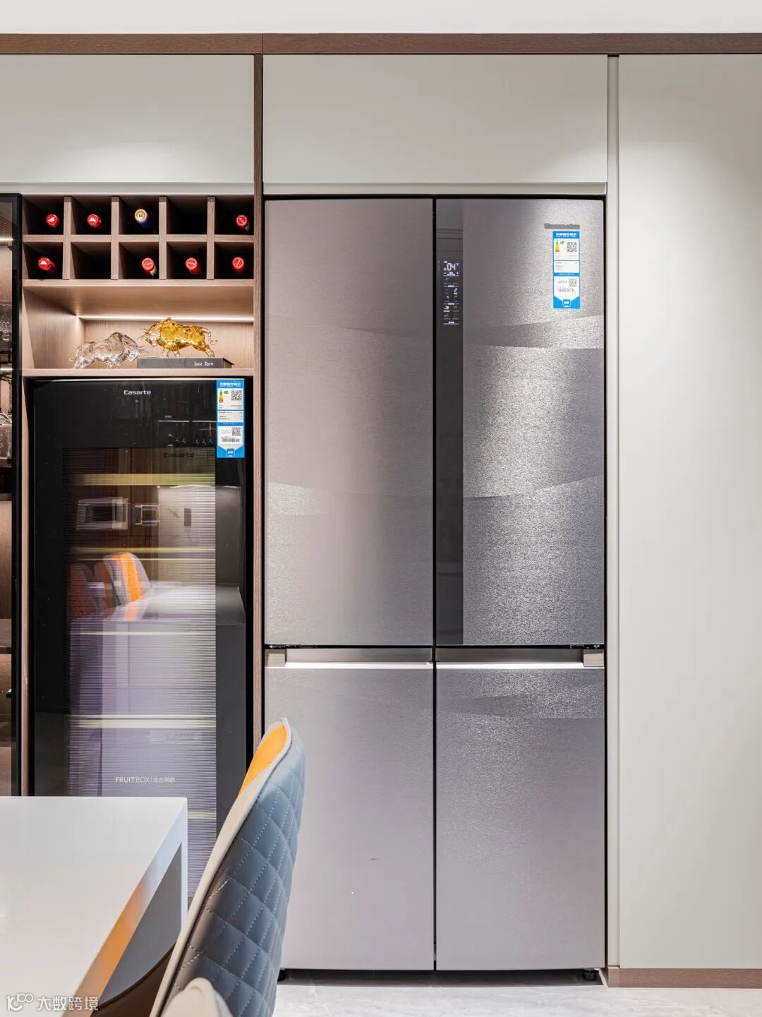 零嵌式冰箱是前置底部散热,两侧不需要预留散热空间,实现了冰箱与橱柜之间的无缝贴合,使得冰箱在关闭时与橱柜之间几乎没有缝隙,达到了极致的美观效果。