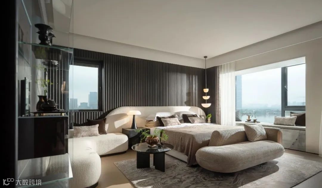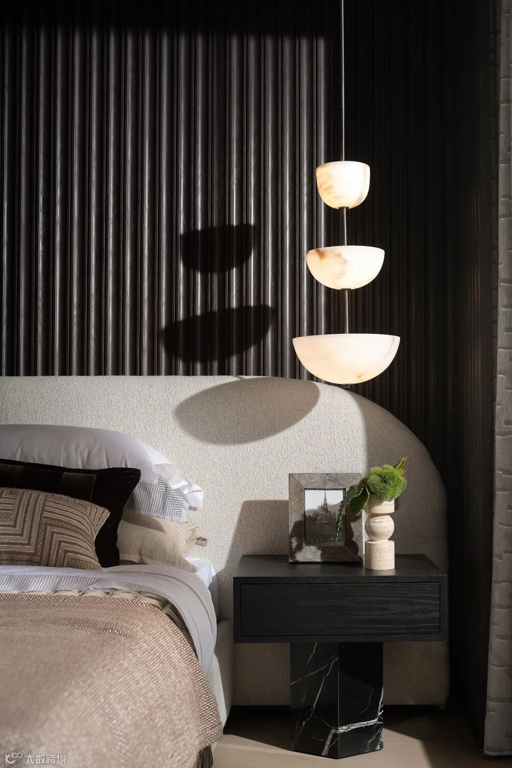 主卧以流畅的线条、醇厚的材质肌理,描绘一处静奢秘境。