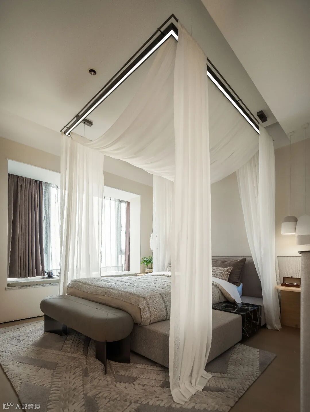 帷幔自然垂落增加了空间的灵动感,如梦似幻,打造一个“沉浸式”的空间氛围。