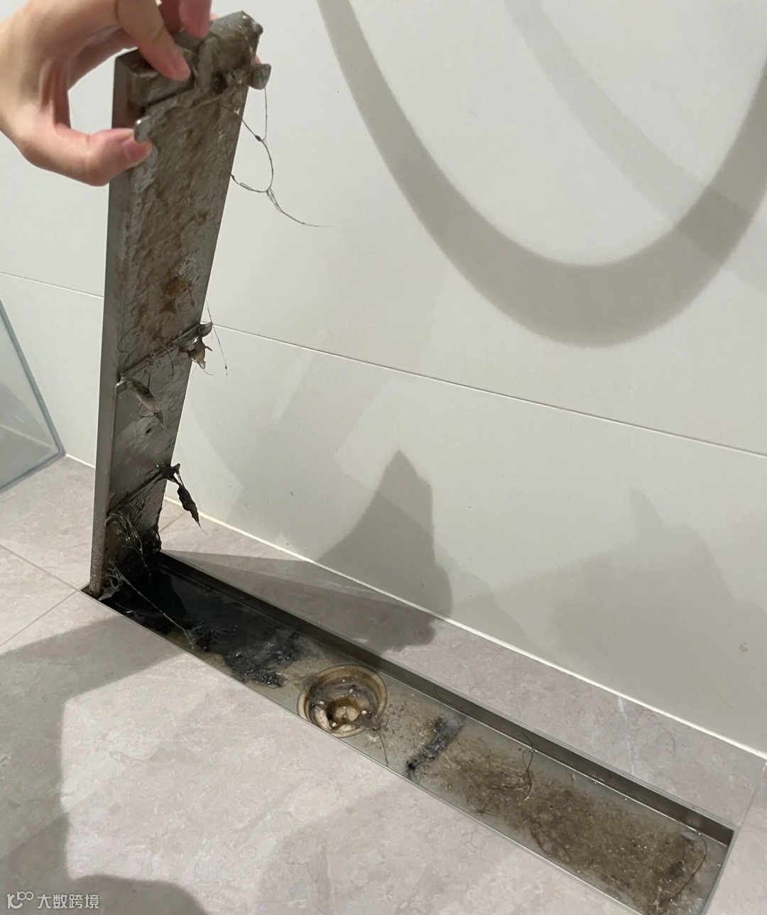 长形地漏看着一窄条,嵌入式设计显得高级,但入住后,打理是真的麻烦。