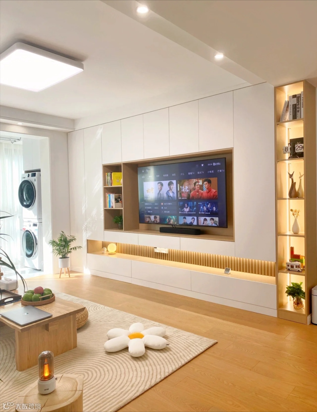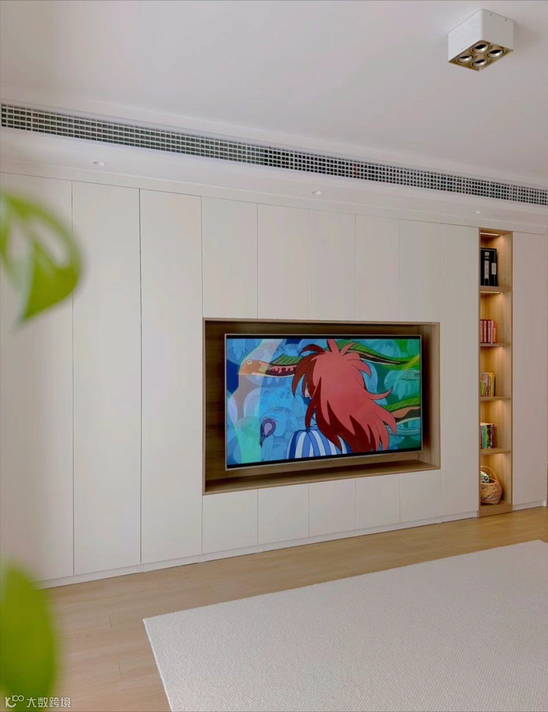 建议面积小于120的(最好客厅深度>3米)、家里有小孩的、或者即将有小孩的、喜欢买买买的、收纳功底差的...都把整面电视柜安排上。