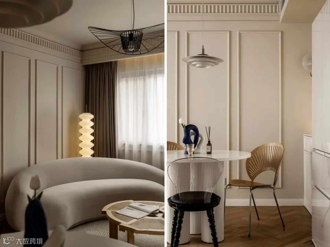 上面跟大家盘点了新法式的元素,光知道也没用,还要会“抄”,会灵活的应用到自己的设计方案之中,来一起看看如何把这些元素,应用到自己的设计中去吧~