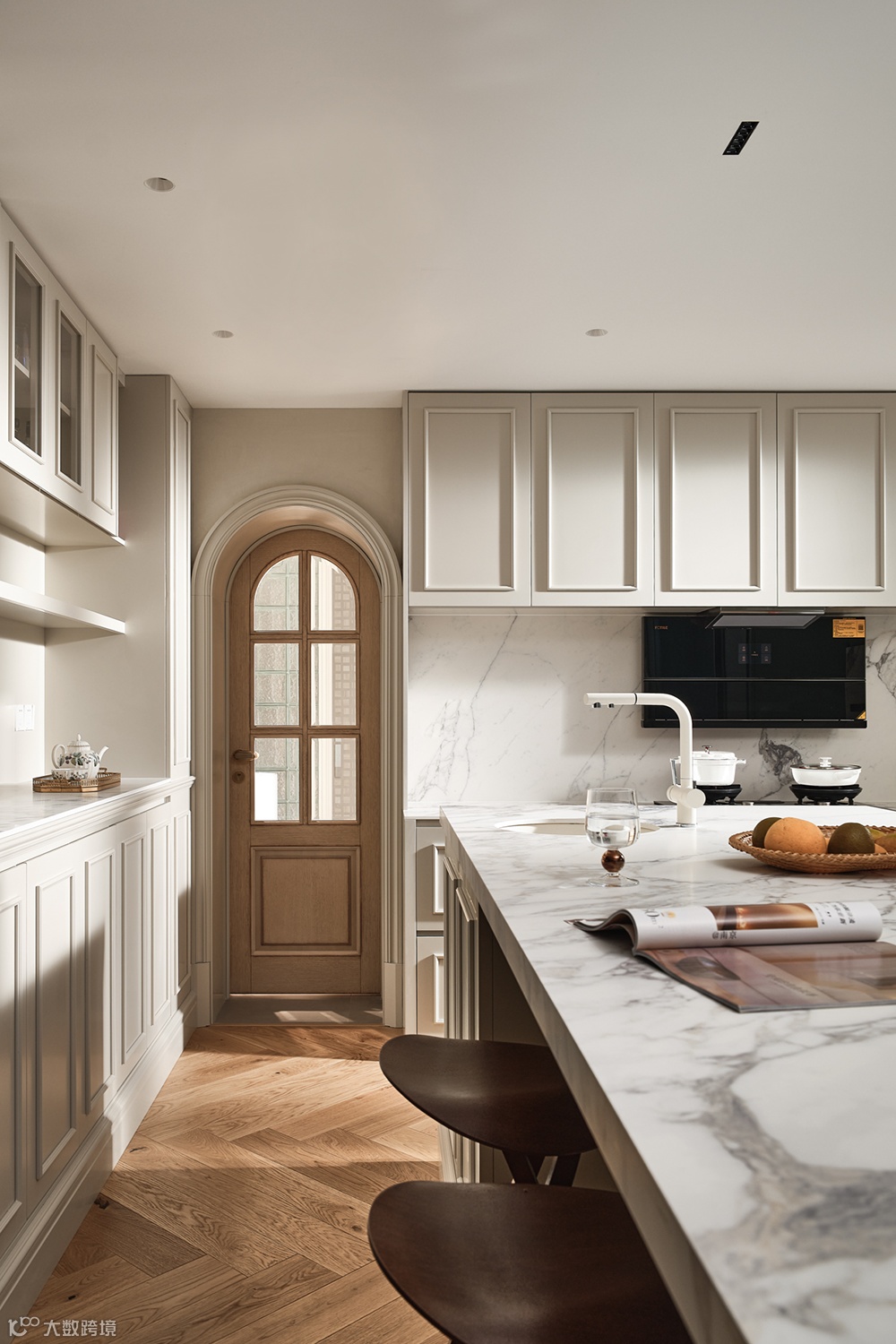 而在新法式风格中往往会有一些中式家具的融入,中式设计的硬朗线条和法式的温润柔和相呼应,弱化彼此,又相互共生,展现出独特的美学个性和实用价值。
