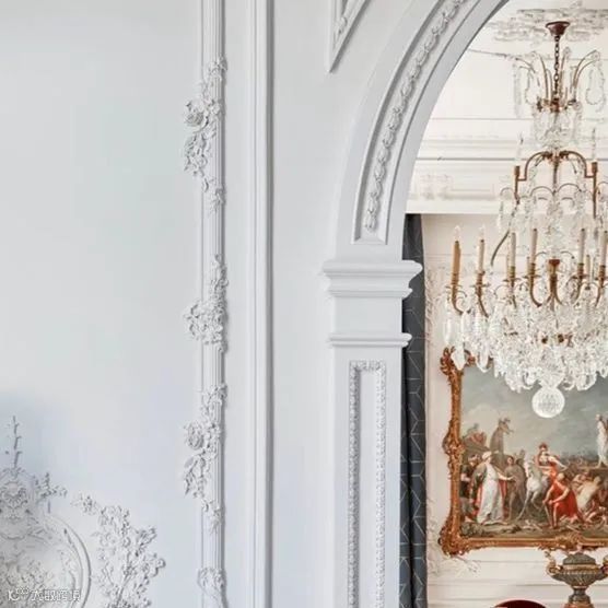在细部构造上采用法式宫廷元素,比如廊柱,角线,雕花,在工艺构造的精细度上要求很高。而且这些元素不仅在室内装饰上大量体现,建筑风格也是如此。