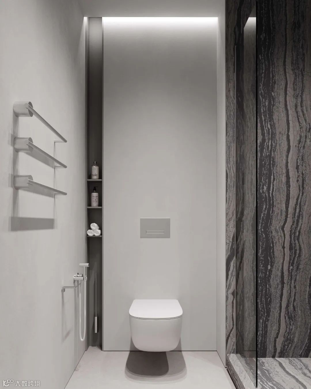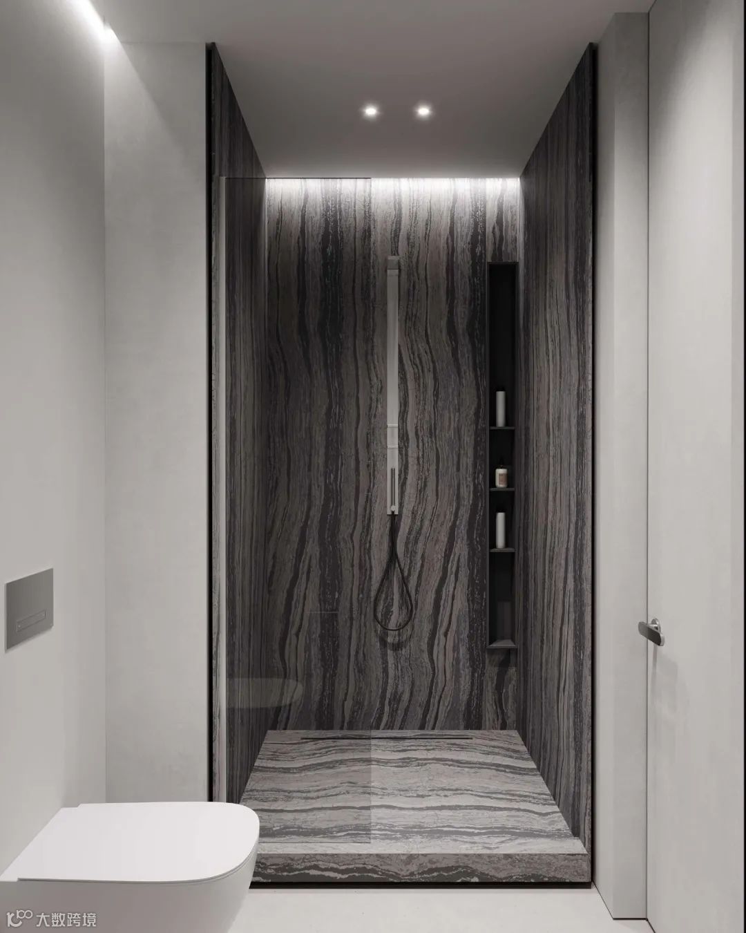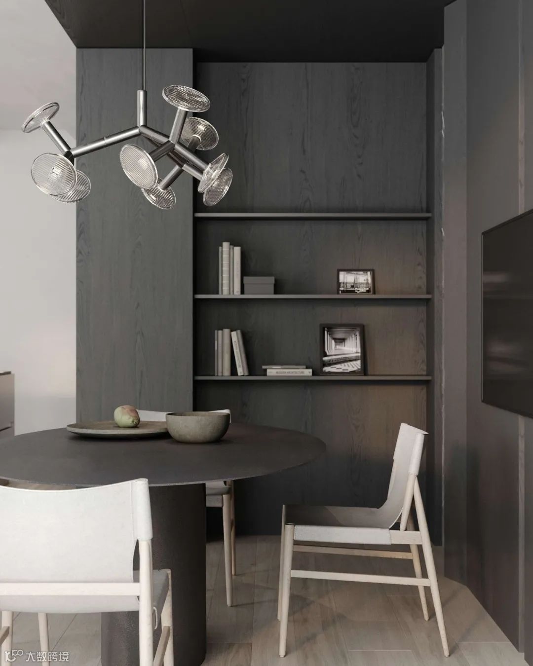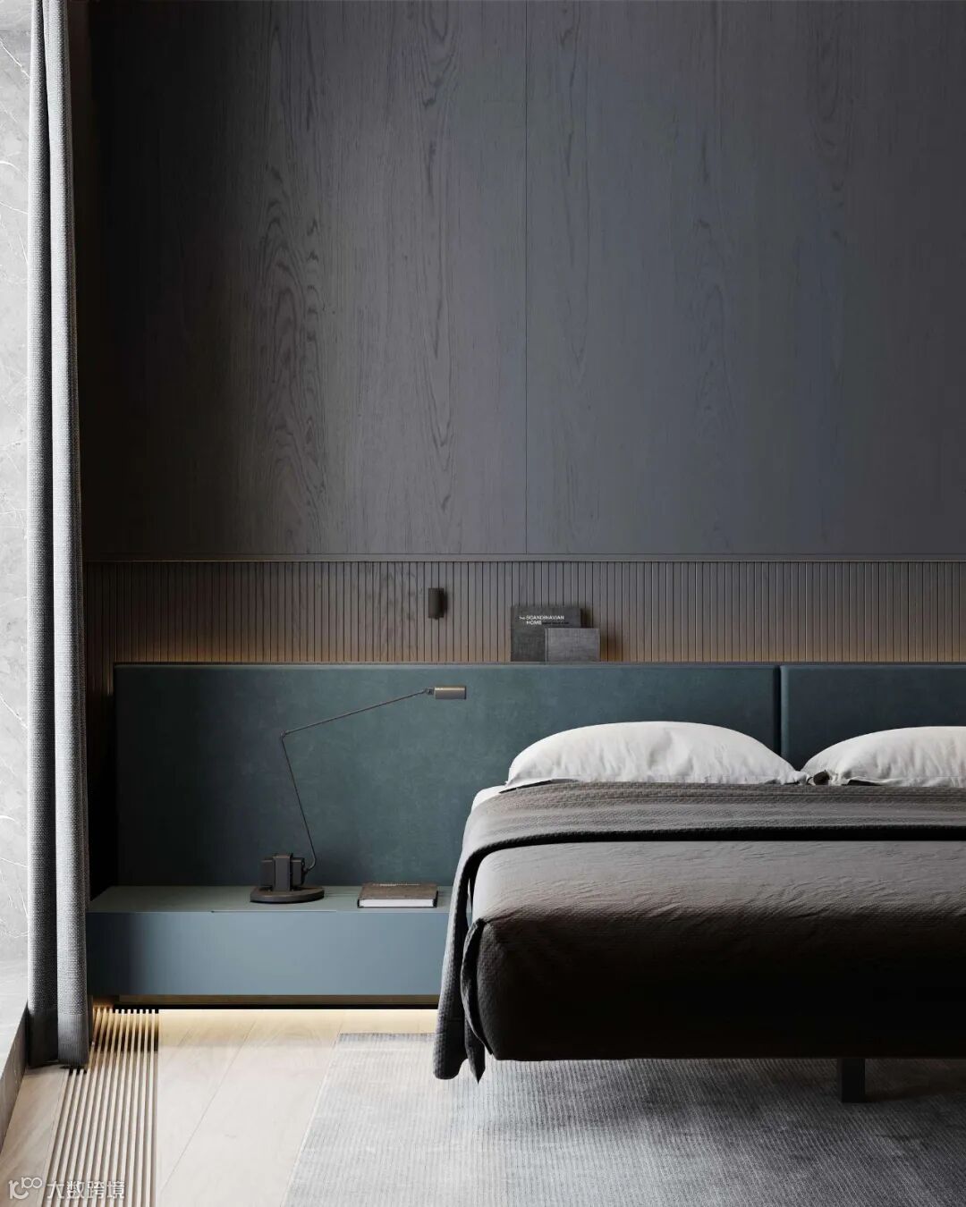 灰白的底色中,温润木材元素构建起冷暖平衡的空间韵律,再加上材质和灯光的运用凸显,使整个公寓质感与舒适度得到结合。