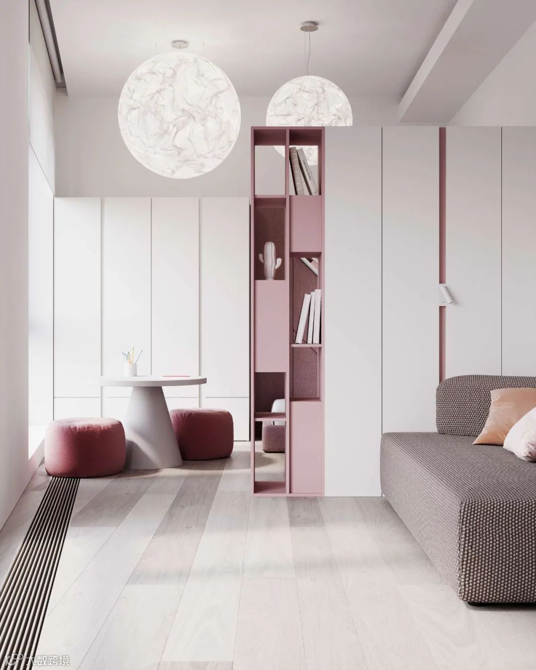 以粉色系陈软贯穿起“梦幻”的空间主题,赋予居者丰富的视觉体验,为孩子打造出一片专属的童趣天地。