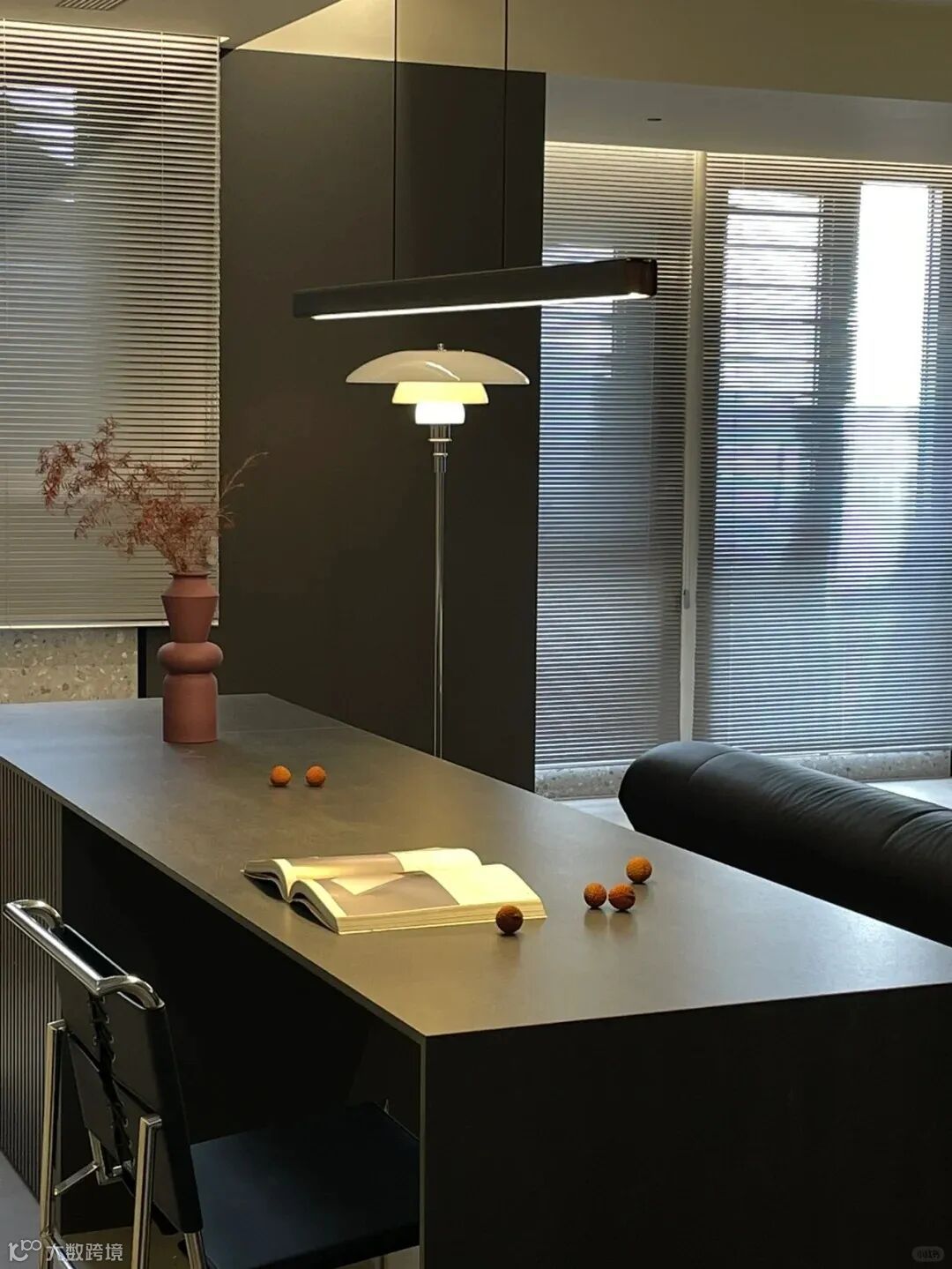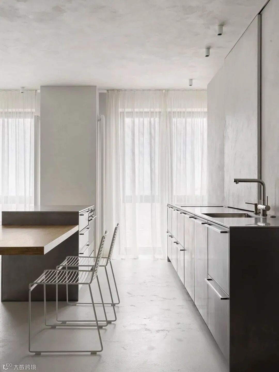 金属、玻璃、石材以及高级灰调木质的使用
