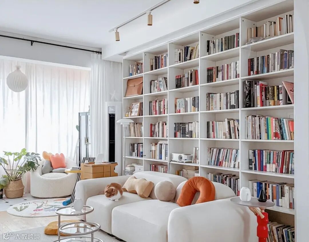 客厅设计开放式书柜也逐渐流行开来,觉得可以收纳大量书籍,还可以营造书香氛围,打造客厅端景。但真正去做,发现并没有想象中那么好,虽然收纳能力很强,但清洁真的是个大工程,一小格一小格都要打扫,挺崩溃的。