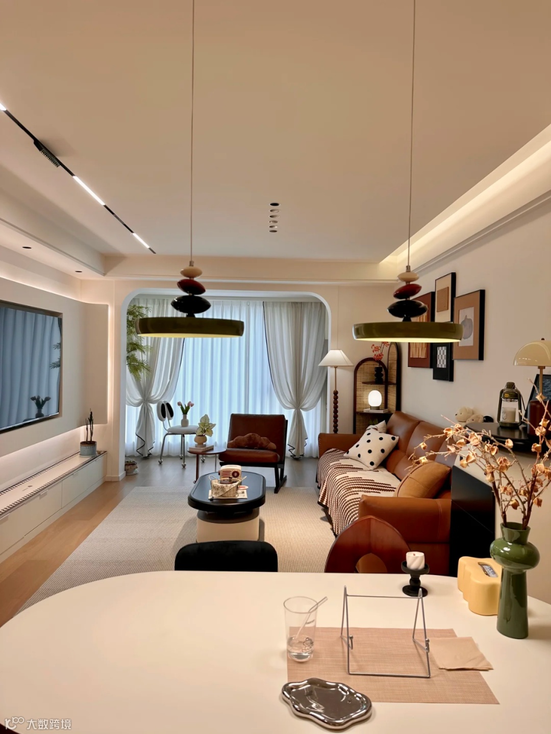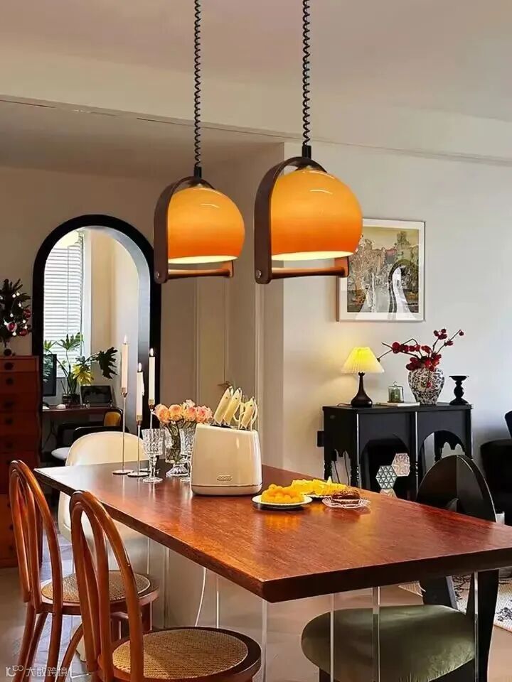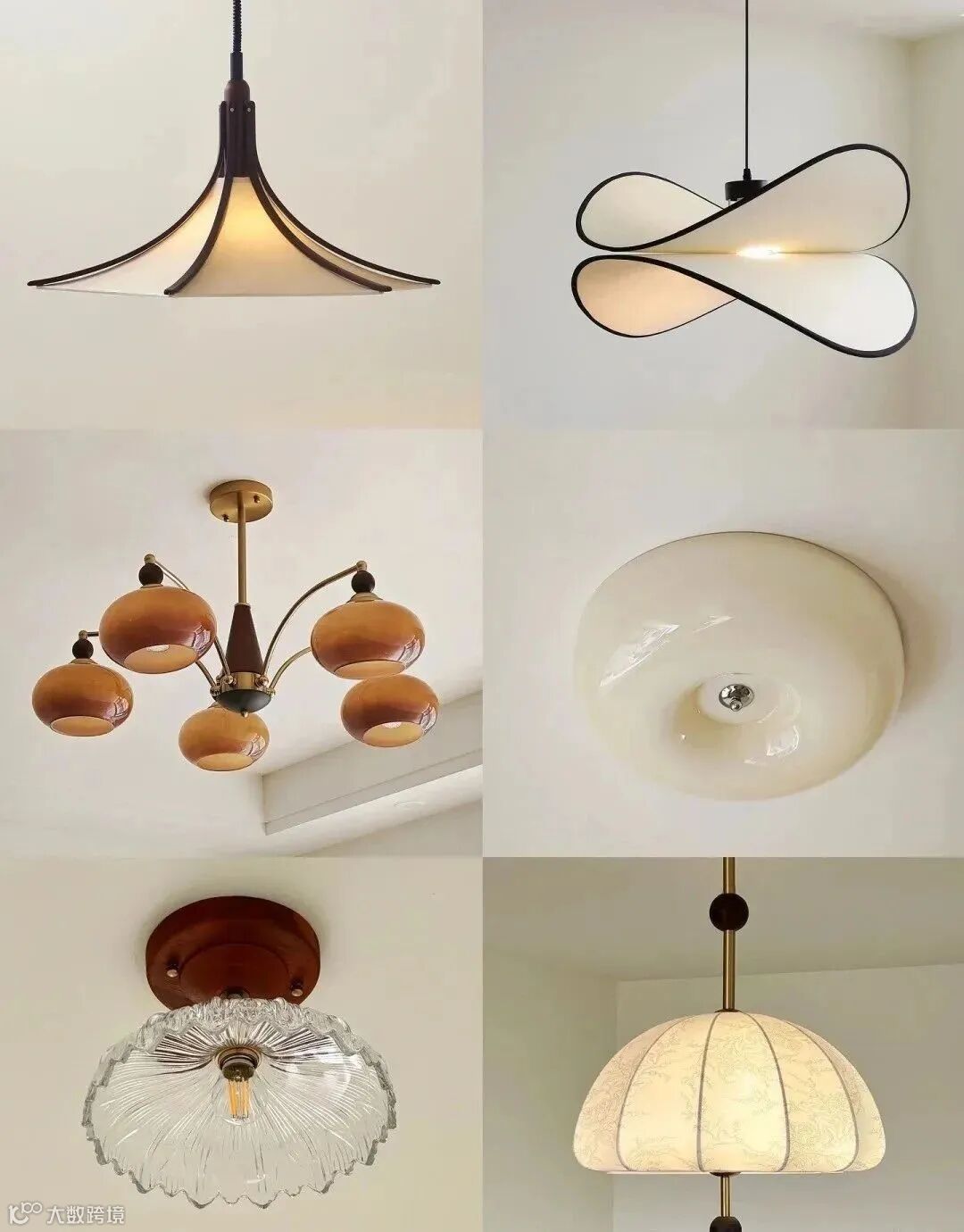 灯光氛围也是中古风一大特点,灯具可以选用吊灯、落地灯、台灯、壁灯进行搭配,灯光选暖光调,复古带一点金属工业风,切忌选择吸顶灯、卡通灯等。