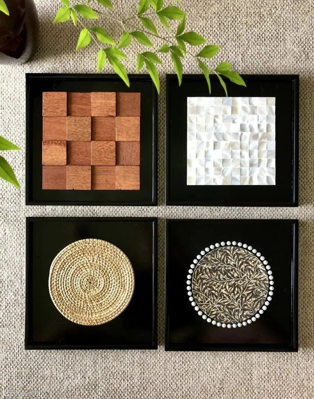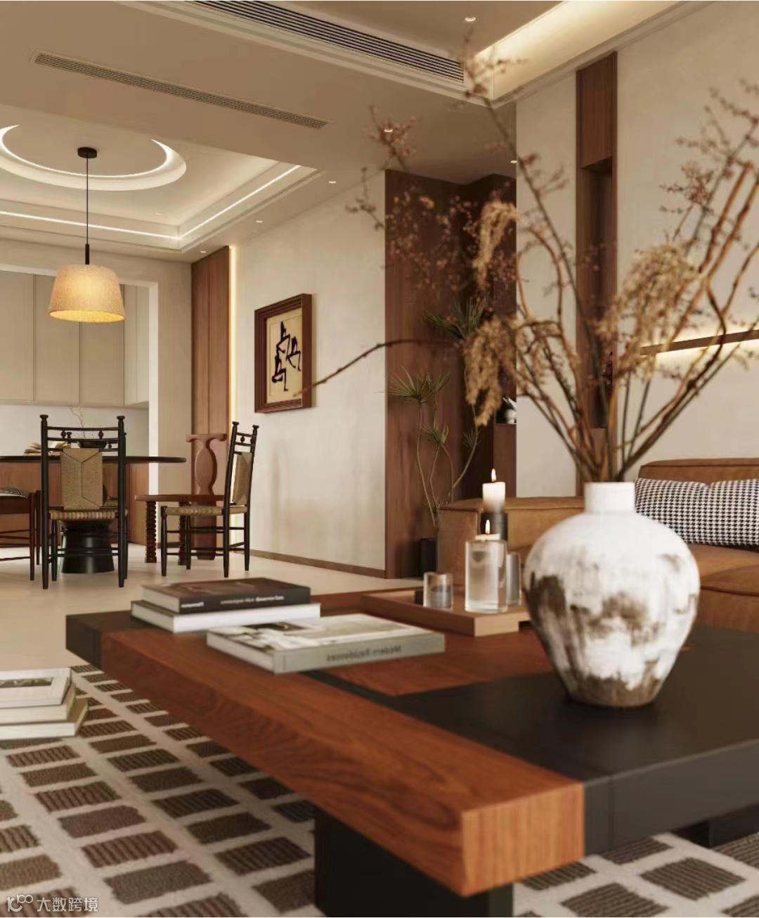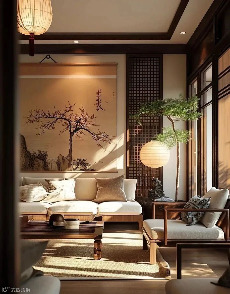 抽象的油画、肌理画、新中式等都适合中古风的装扮,画框也可选用木制、竹制等复古的设计。