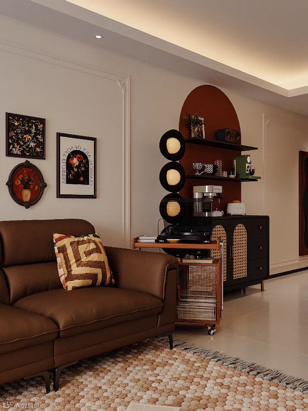 最后,像这种中古风凸显出的复古感,家具的搭配才是核心,建议在购买家具前先做好高质量的设计方案,千万别等家具买回来以后,搭配不上再去后悔。