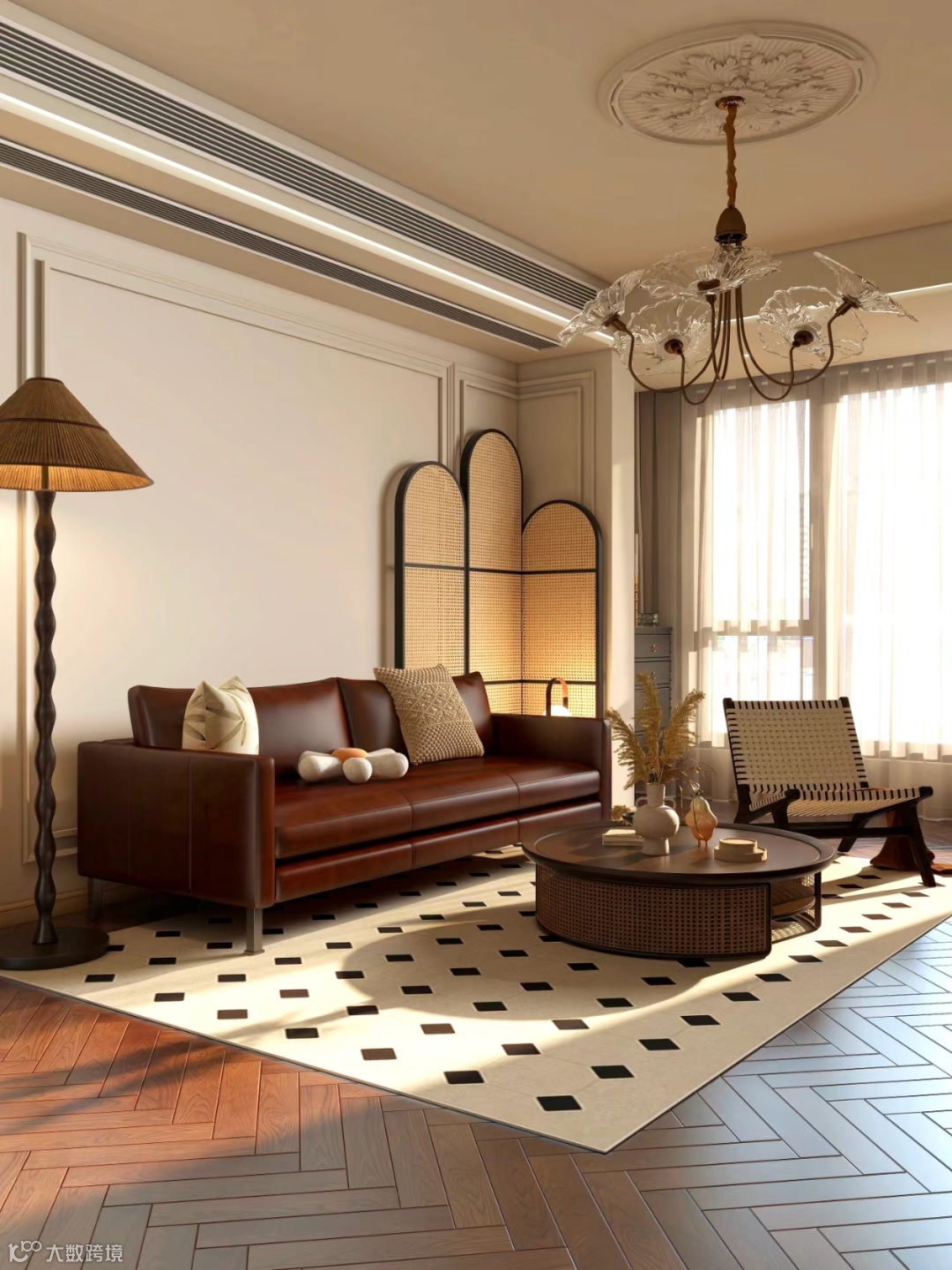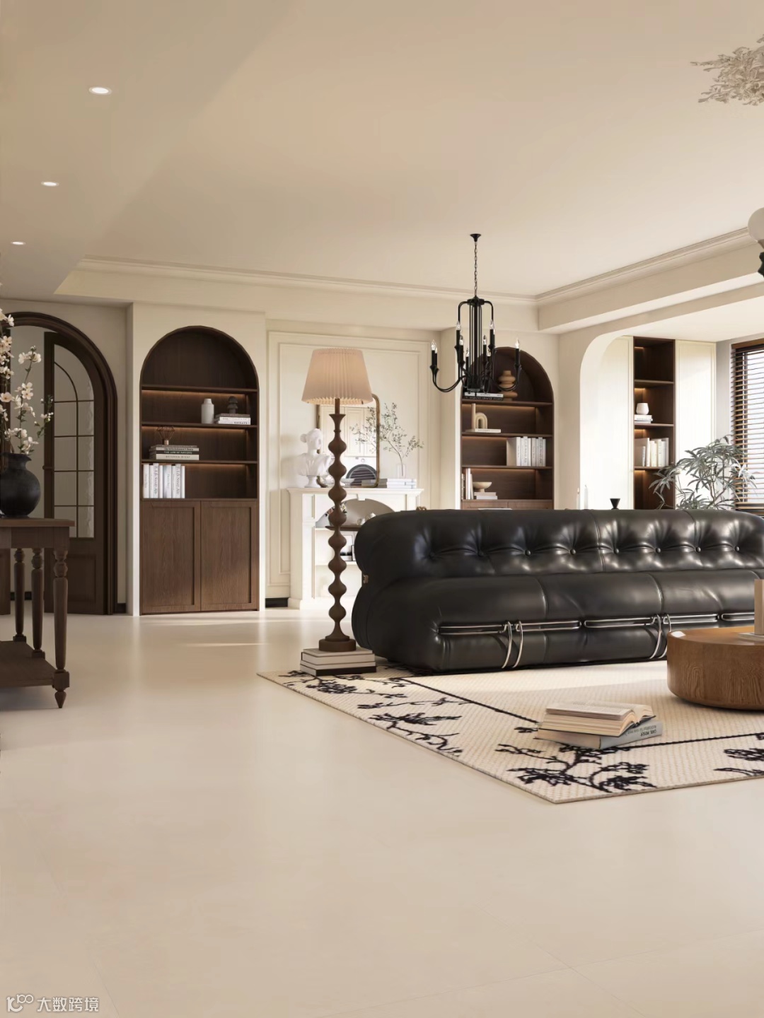 中古风沙发通常选用奶白色、咖色、黑色、焦糖色等,可以搭配有藤编元素或奶白、墨绿、黑白条纹等有复古风格的单人椅进行搭配。