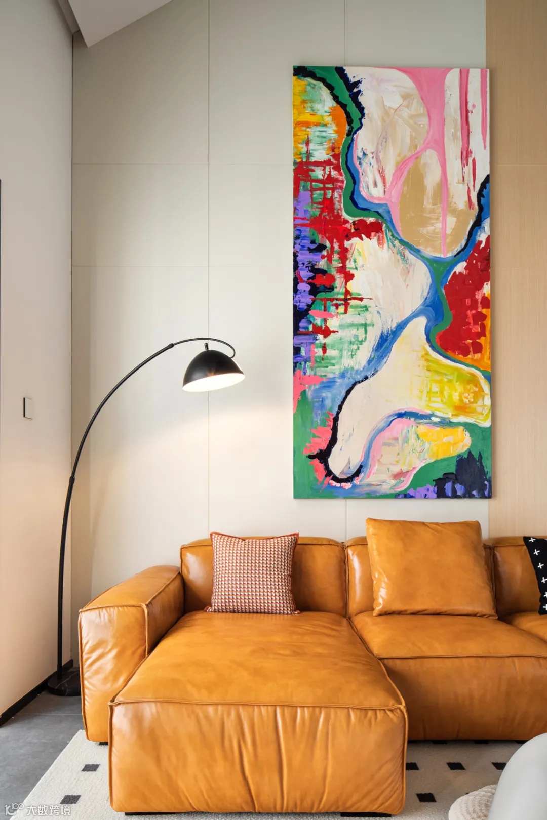 为空间增加层次感就可以选择一些不同高度的小单品进行搭配,比如在沙发旁添置一个高挑的落地灯/绿植架,或者在电视机旁边搭配一个高脚柜。