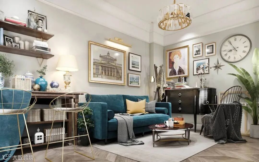 ②搭配一些艺术感强、风格符合整体氛围的装饰画或壁饰,放在客厅墙面上,能够点缀整个空间,使其更具层次感。