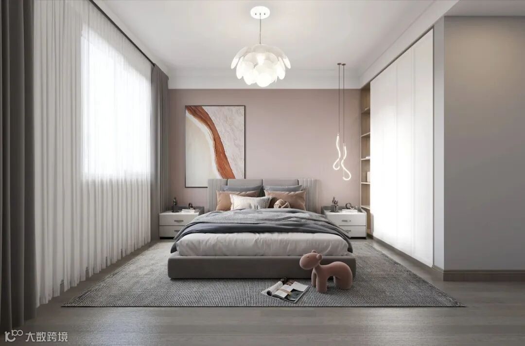 ①床上用品的选择直接关系到睡眠质量,可以选择亲肤柔软的棉质床品,搭配一些色彩和图案与整体风格相协调的枕头和抱枕。