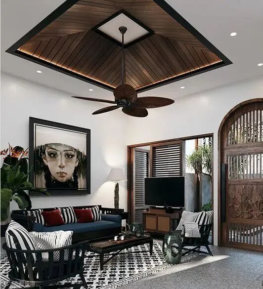 所以在现代的南洋风中,软装搭配需要讲究里面的多层次处理。其中运用比较多的软装元素有:绿植、藤编家具、壁纸、中式元素、吊扇灯等。