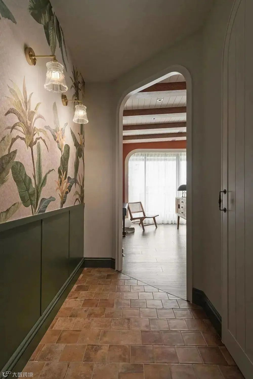 硬装上的元素要点有:曲线、花砖、百叶窗、老式木门、玻璃门洞等。