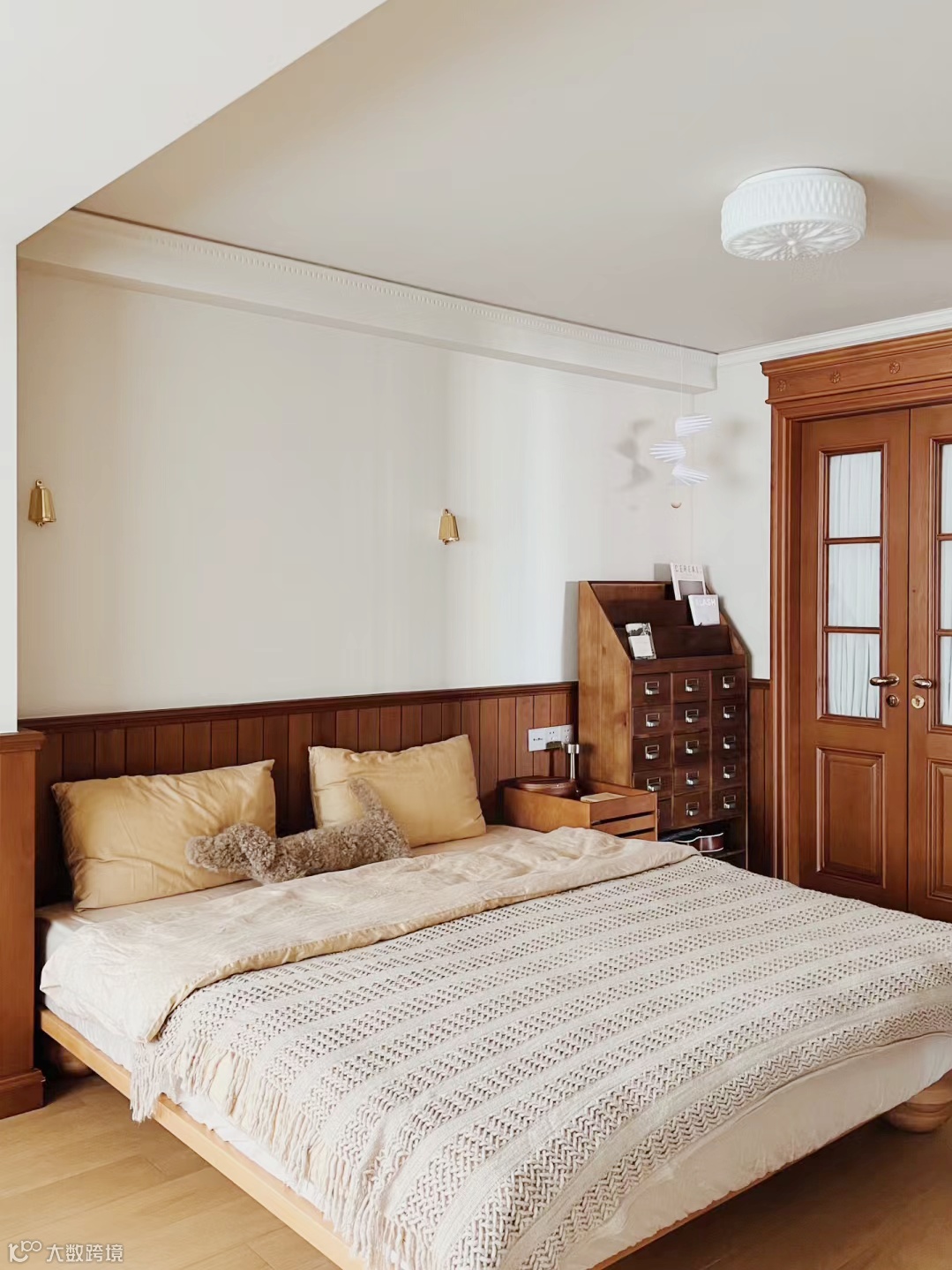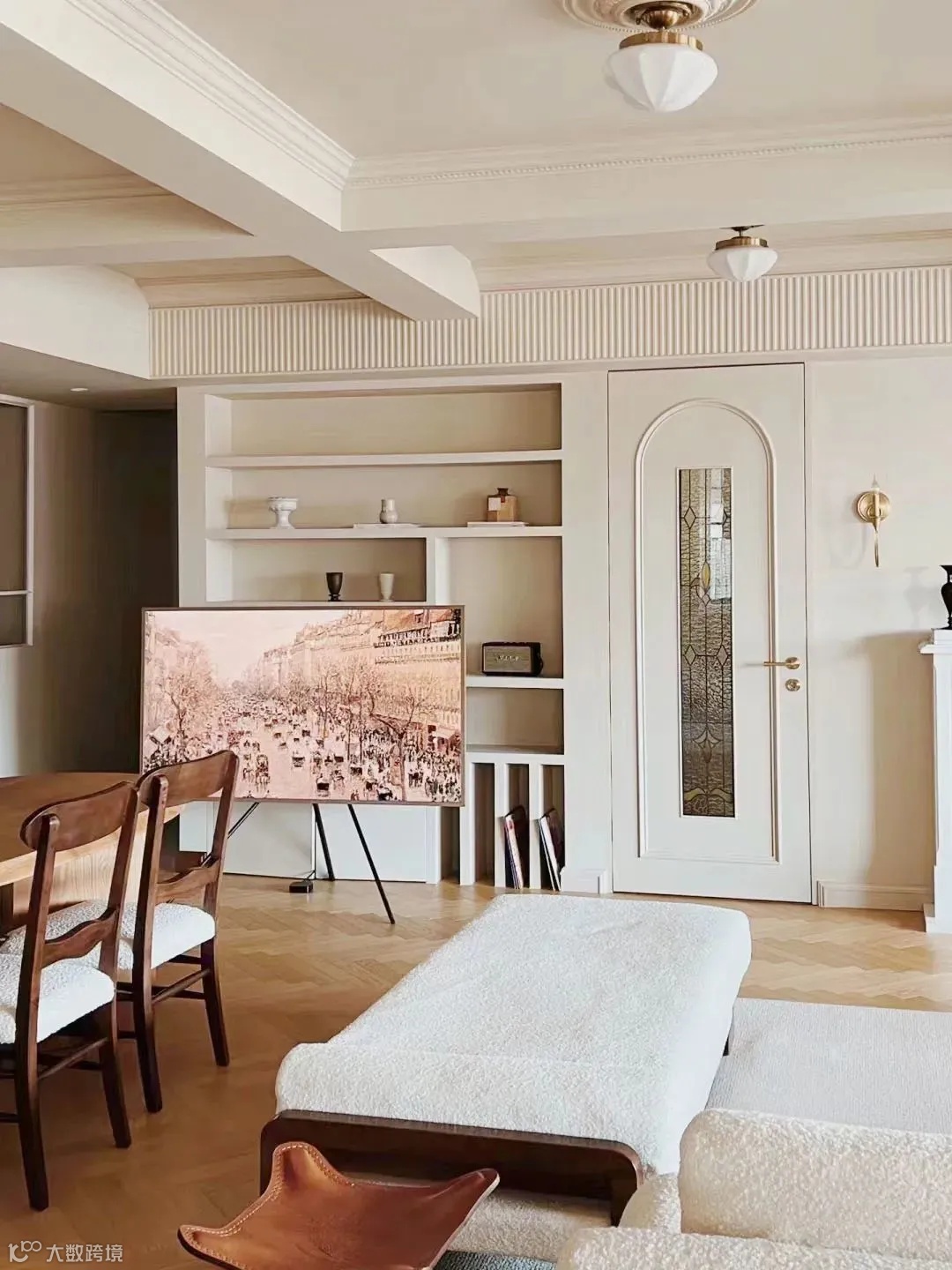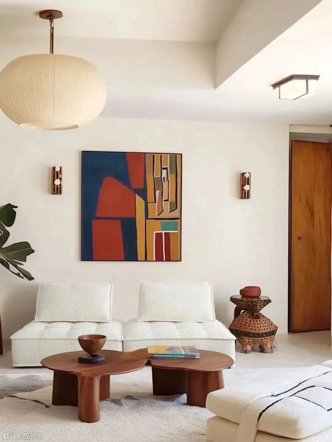 美拉德色调的陈设+乳白色墙面,空间显得更有层次,明亮又温柔,恰到好处的留白,可以给予房间呼吸感。