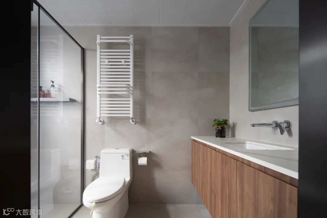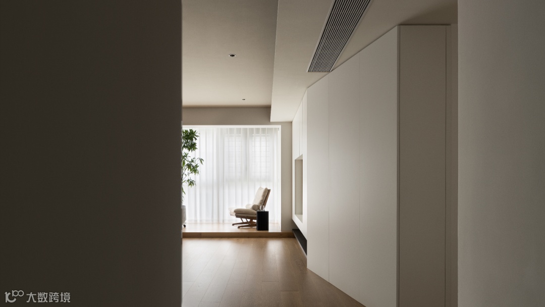 电视墙做了整面储物柜,满足收纳需求,东西都能收纳进柜子里,保持空间的整洁干净。转角柜体做了斜切处理,空间过渡更自然。